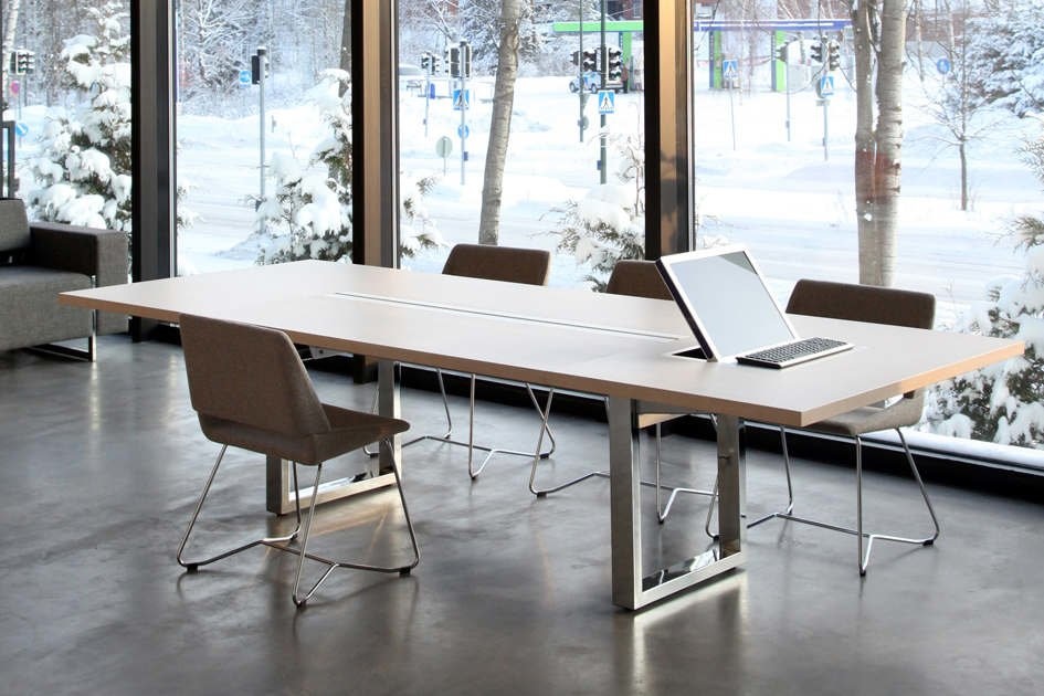 Kenmerkend voor de Inno In-tensive O-poot vergadertafels is de multifunctionele kabelgoot die altijd verwerkt zit in het midden van de tafel. Zo kunt u deze tafel niet alleen als vergadertafel gebruiken, maar ook als tijdelijke werkplek, ook wel aanlandplek genoemd, om even snel wat mailtjes te beantwoorden. U heeft immers altijd toegang tot een oplaadpunt van uw elektrische apparaten.