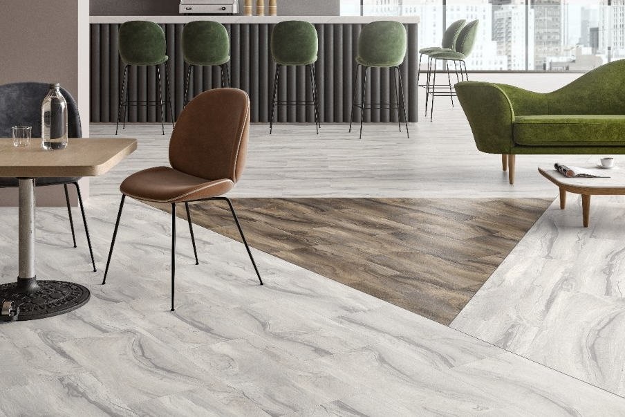 Moduleo 55 River Wood is één van de luxe vinyl vloeren uit de LVT collectie van IVC. Met deze collectie vinyl tegels speelt IVC Moduleo in op de trend van gedurfde en originele vloeren. Het dessin van deze vloeren is een mix van de karakteristieke kenmerken van een houten vloer en de uitstraling van een vloer van marmer. Een zeer bijzonder dessin waarmee u moeiteloos een blikvanger maakt van de vloer van uw project of zakelijke ruimte. De River Wood collectie biedt u keuze uit 3 mooie warme kleuren met elk hun eigen allure, variërend van licht naar donker. Er zit dus altijd wel een kleur bij die bij uw interieur en meubilair past .Kenmerken van IVC Moduleo 55 Tiles River Wood