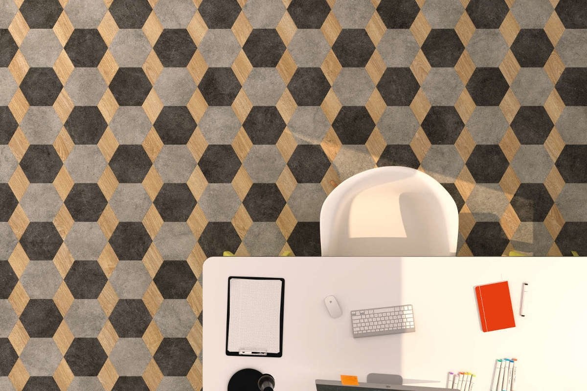 Moduleo 55 Studio Moods Honeycomb is één van de luxe vinyl tegels uit de LVT collectie van IVC. Deze honinggraat vinyl tegels hebben een hoge decoratieve waarde en geven een speels effect aan uw inrichting. Studio Moods Honeycomb honinggraat vinyl tegels motief bieden de mogelijkheid om uw project of welke zakelijke ruimte snel en makkelijk een upgrade te geven met deze karakteristieke vloer. Deze vinyl vloer met Honeycomb tegels hebben een vintage twist in een modern jasje. Deze tegels uit de Studio Moods serie hebben 6 hoeken en dus geen dominante hoek of richting. Hierdoor bieden de Honeycomb tegels uit de Moduleo serie van IVC een perfecte vloeroplossing voor elke soort, vorm en afmeting van ruimte.