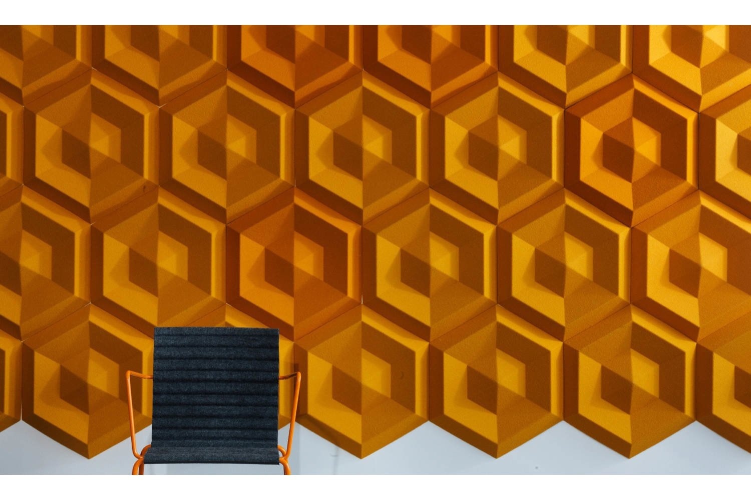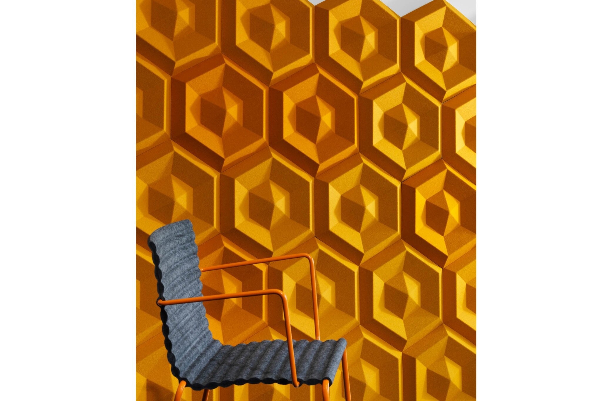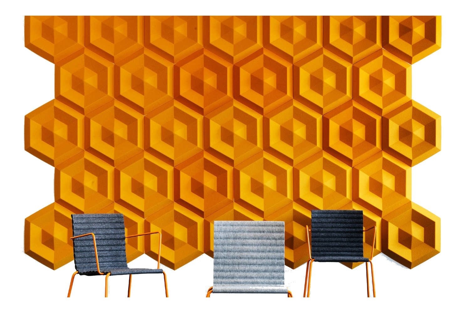 Geïnspireerd door de natuur, Beehive is Engels voor bijenkorf en de bij bouwt zijn bijenkorf met dit patroon louter vanwege haar sterke structuur en vereist een minimum aan materialen. Nu is deze vorm van was gebruikt om deze geluiddemper voor op de muur te creëren. De Johanson Beehive is een geluiddemper dat geluid vermindert, zoals lawaai en stemmen. Hij is eenvoudig te monteren op de muur. Eigenschappen Johanson BeehiveDe Beehive akoestische wandpanelen zijn leverbaar in verschillende kleuren, zoals zwart / donker grijs / lichtgrijs en gebroken wit en zijn gemaakt van ecologische producten; 60 - 70% petflessen aangevuld met andere materialen die het vilteffect geeft. Optioneel zijn de akoestische panelen te bekleden met Europost. Hierbij is een keuze uit 48 kleuren.