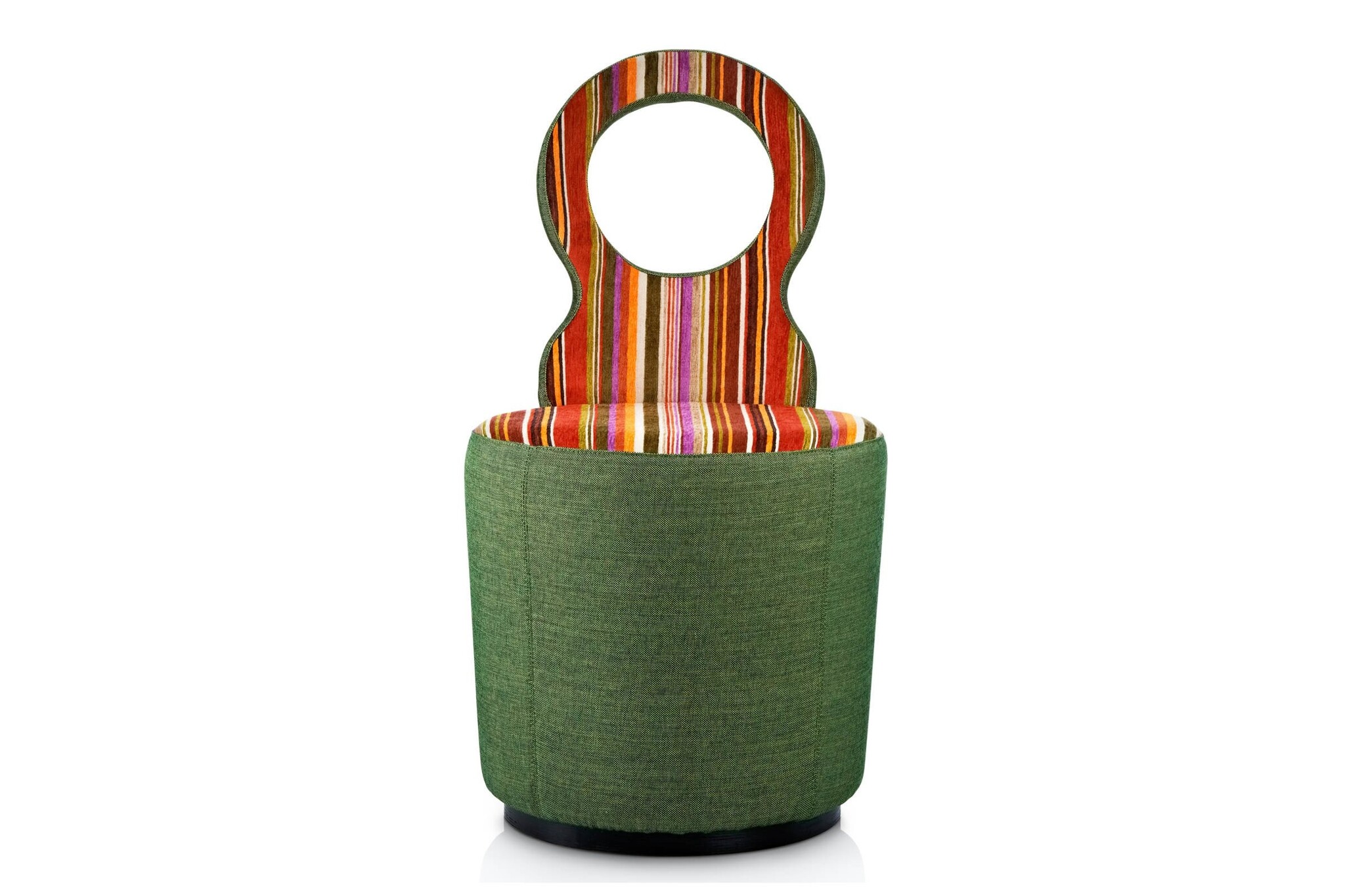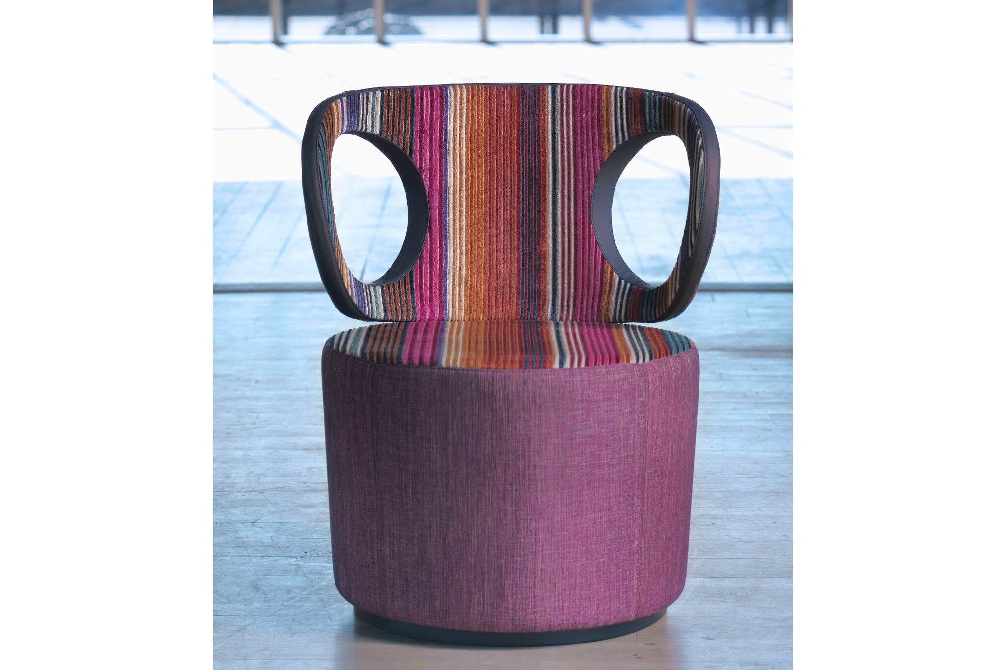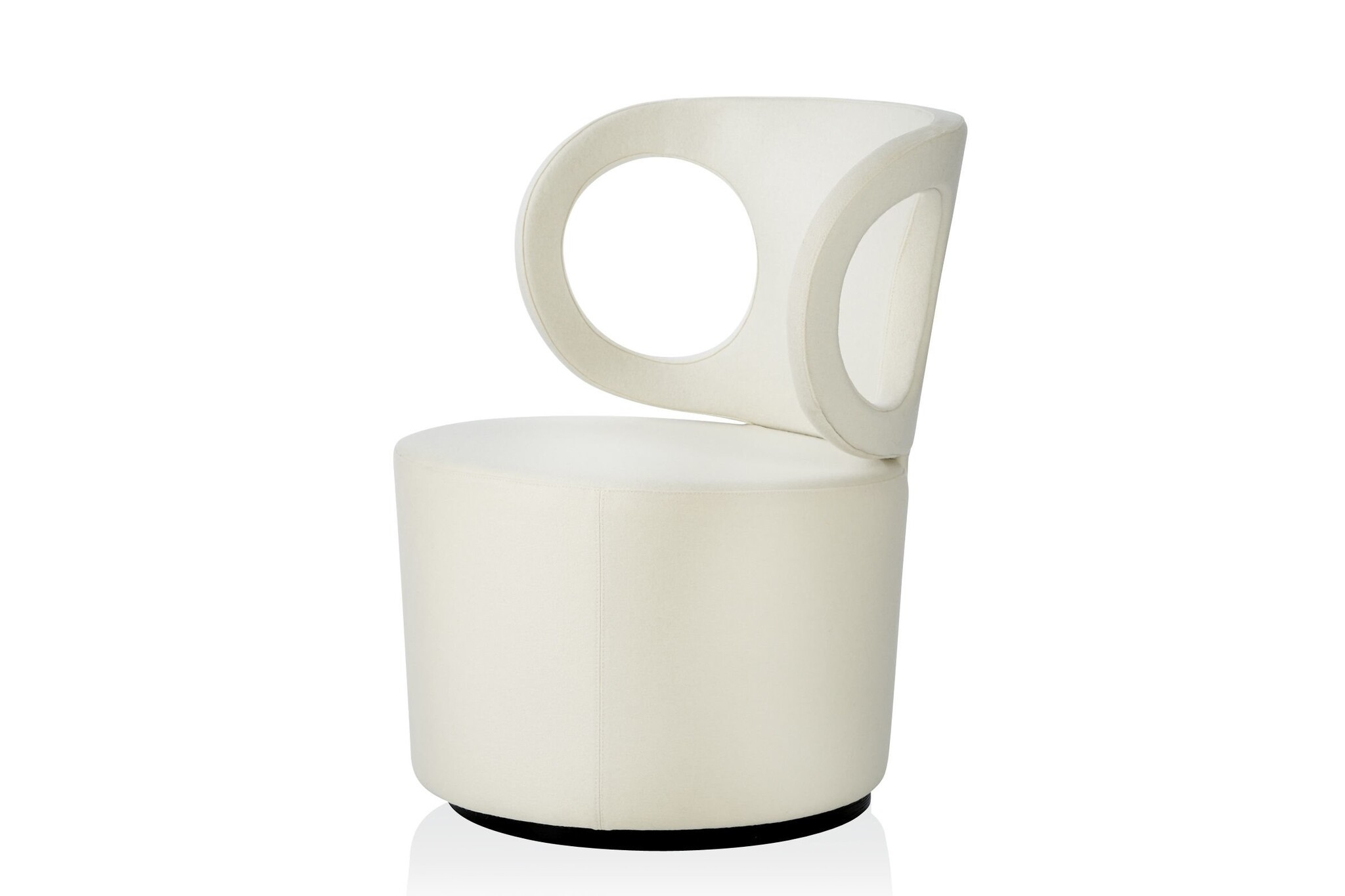 De Johanson Eye is een familie van zitmeubilair en een bijzettafeltje. Verkrijgbaar als poefje | krukje en als groter fauteuil. Met de opening in de rug zijn de poefjes handzaam om mee te nemen. Door de vele mogelijkheden van stoffen, kleuren en materialen is het mogelijk om een eigen unieke stempel te drukken in een (openbare) ruimte. Een combinatie van een stoel en een poef biedt een breed scala van toepassingen. Perfect voor in kantoren, lounges, koffiekamers en cafés. Gebruikte materialen