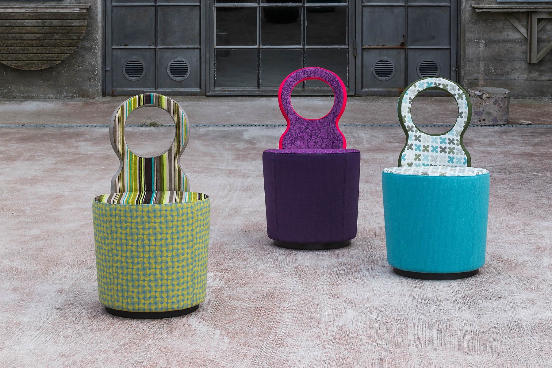 De Johanson Eye is een familie van zitmeubilair en een bijzettafeltje. Verkrijgbaar als poefje | krukje en als groter fauteuil. Met de opening in de rug zijn de poefjes handzaam om mee te nemen. Door de vele mogelijkheden van stoffen, kleuren en materialen is het mogelijk om een eigen unieke stempel te drukken in een (openbare) ruimte. Een combinatie van een stoel en een poef biedt een breed scala van toepassingen. Perfect voor in kantoren, lounges, koffiekamers en cafés. Gebruikte materialen