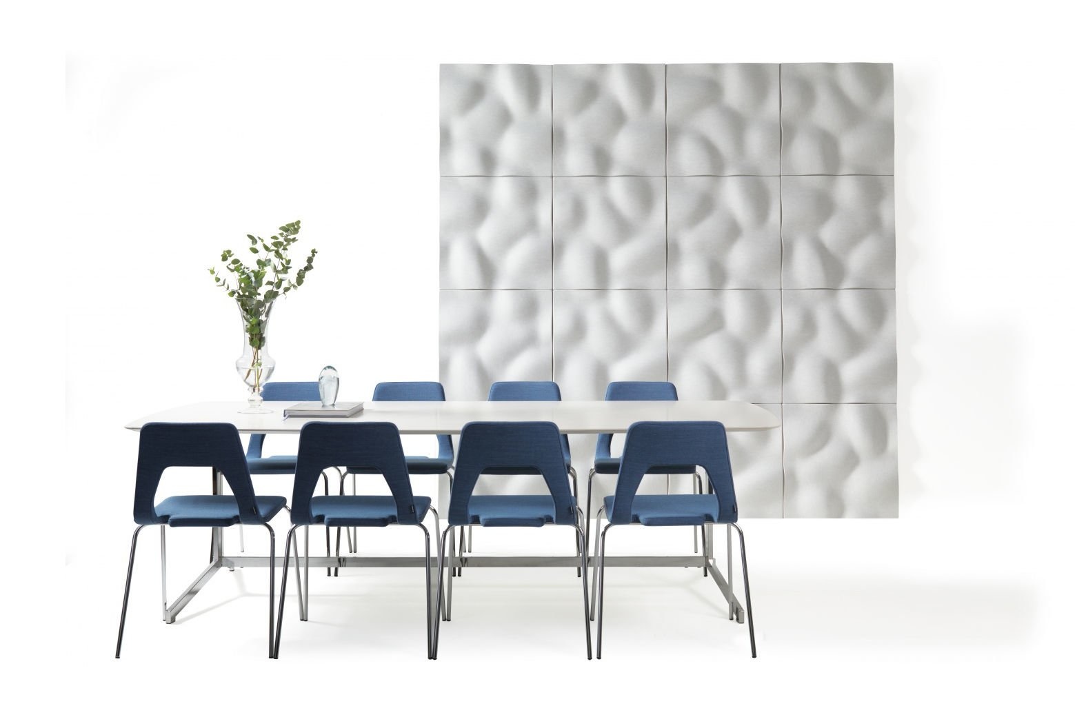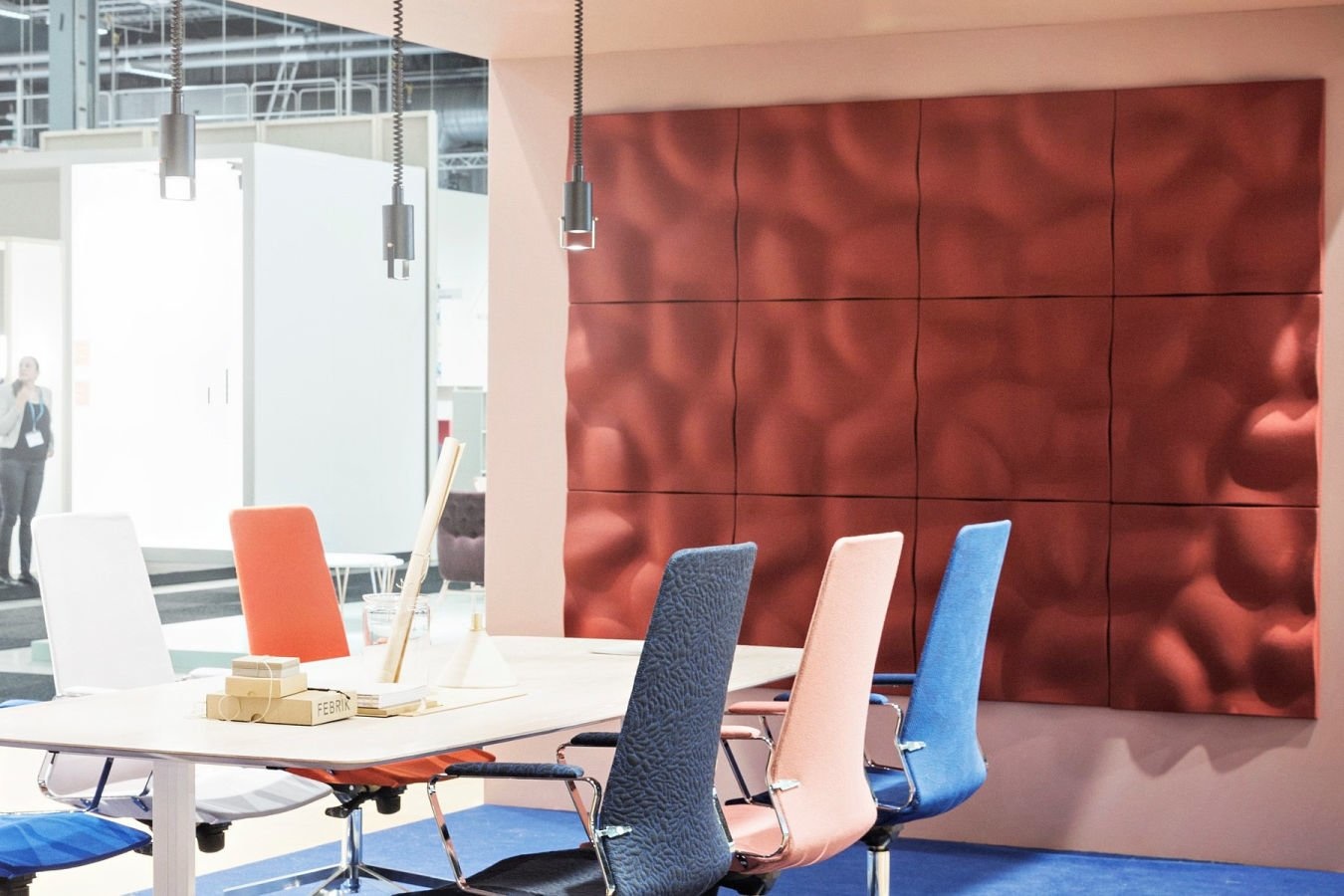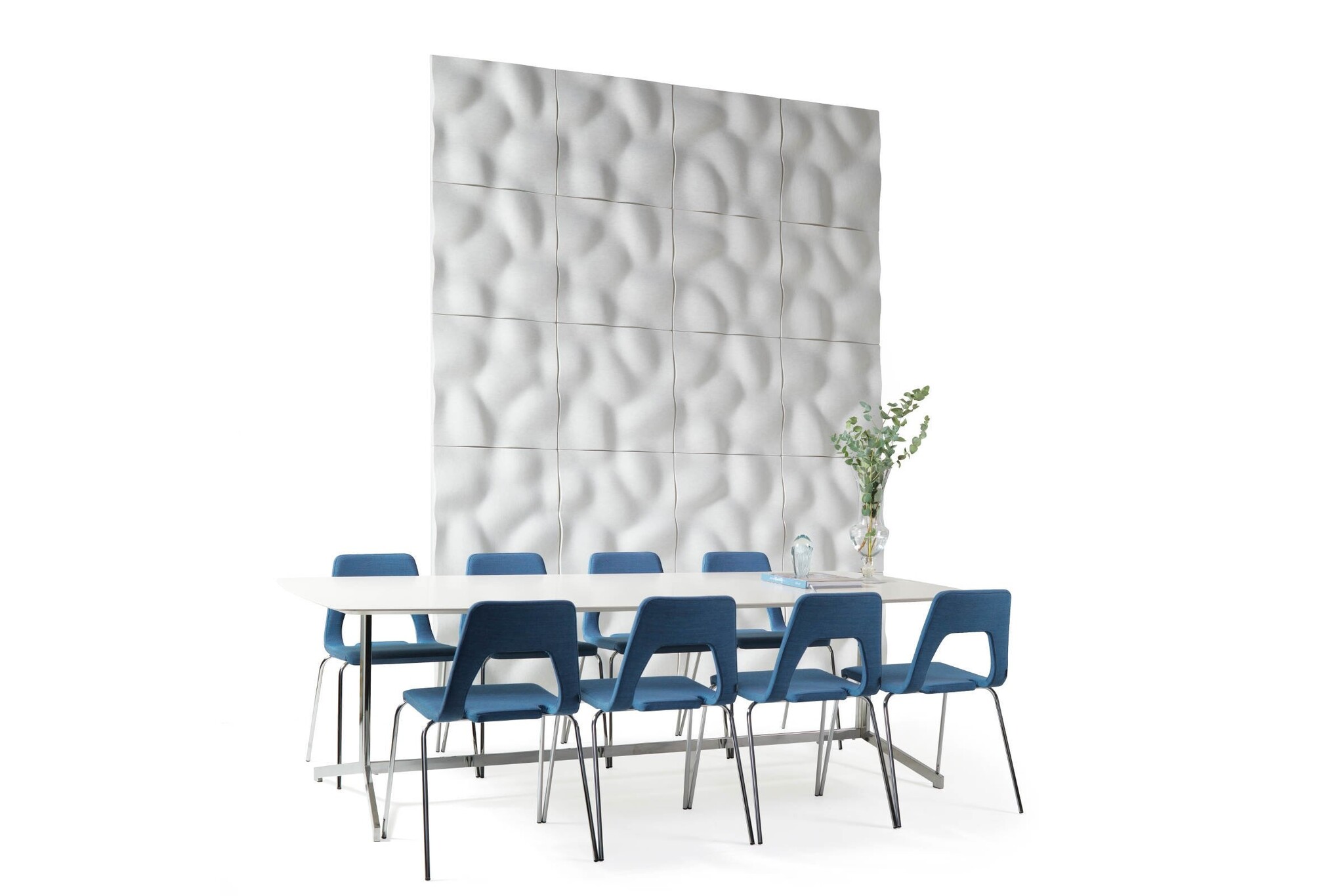 Optioneel zijn de akoestische panelen te bekleden met Europost. Hierbij is een keuze uit 48 kleuren.