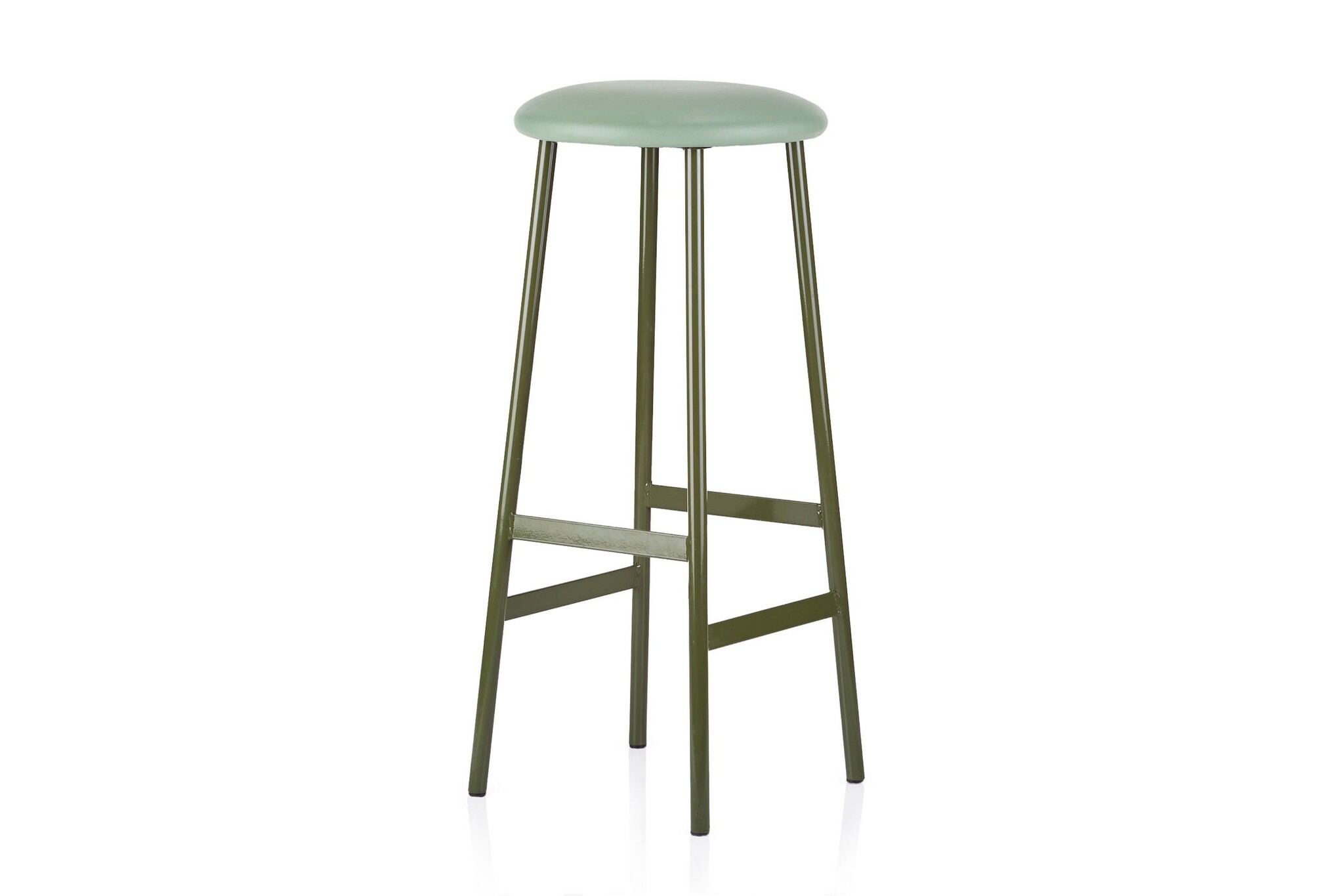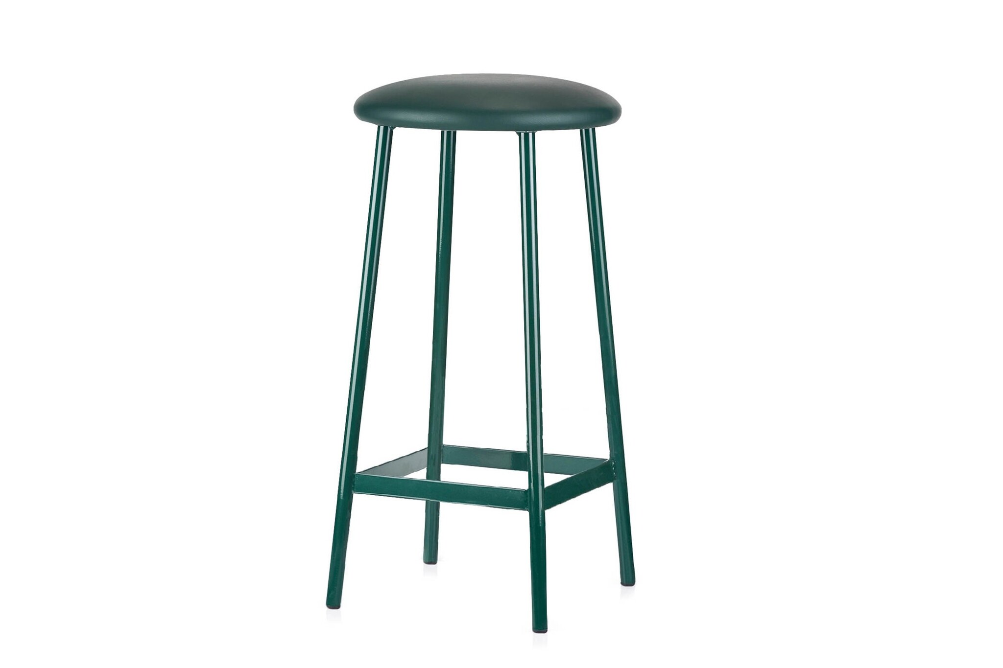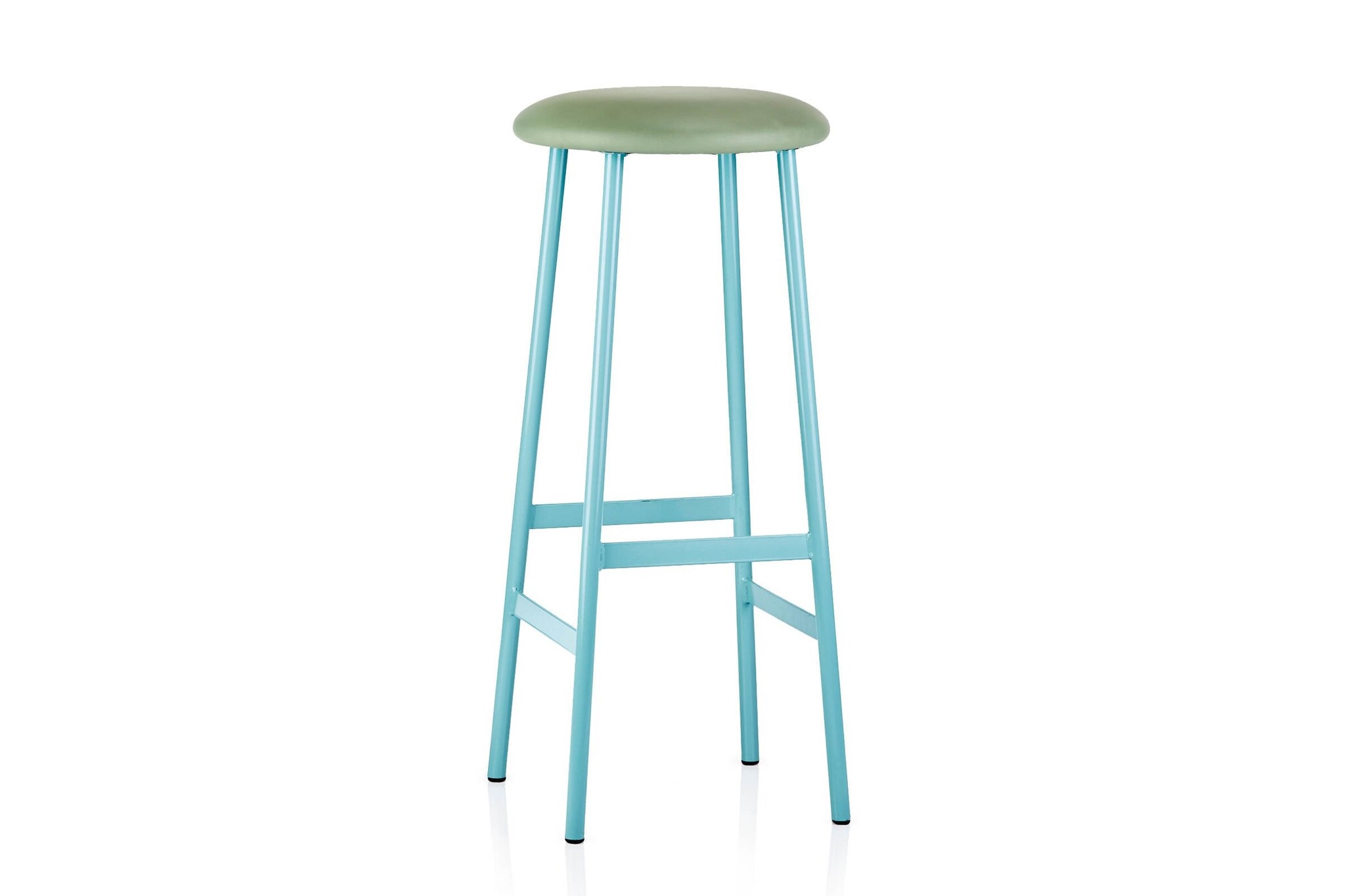 De kruk heeft een ronde zitschaal.