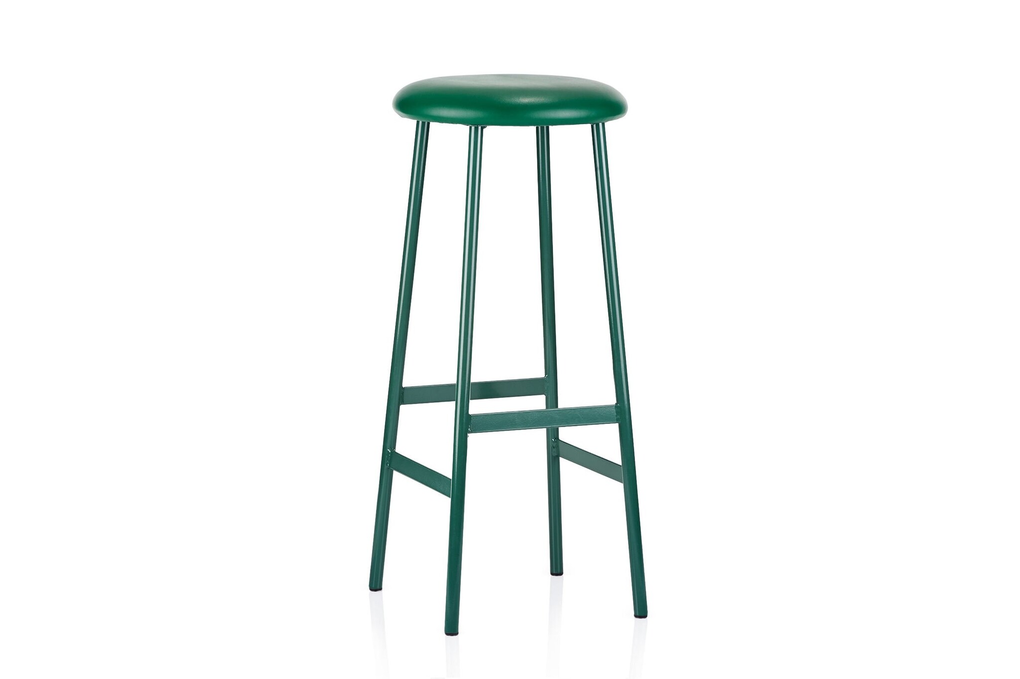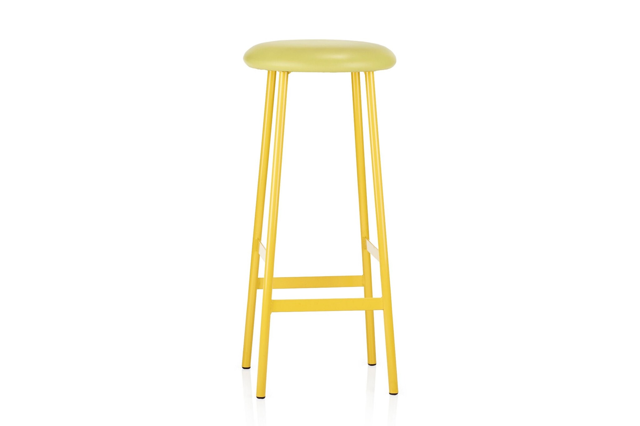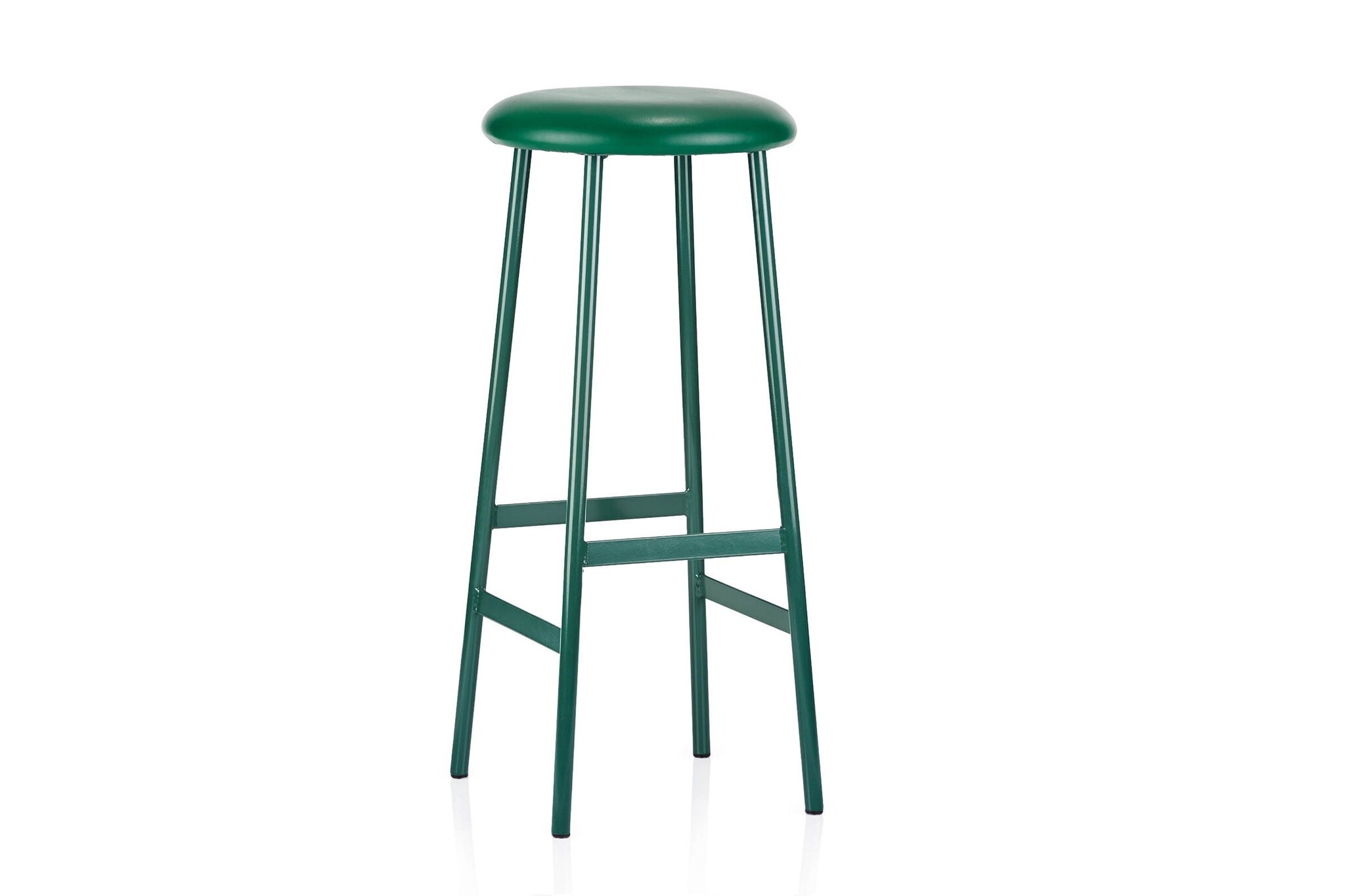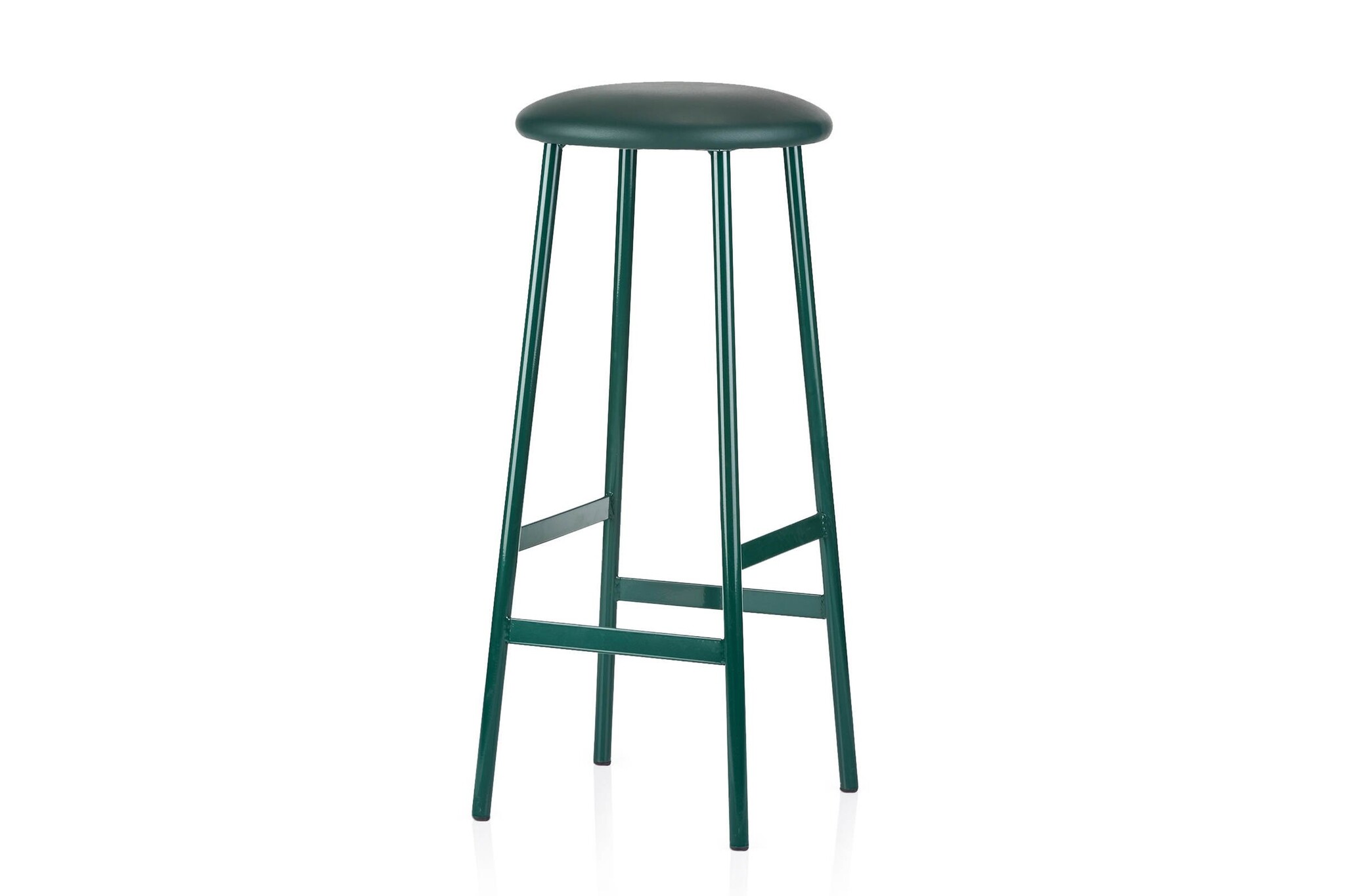 De kruk heeft een ronde zitschaal.
