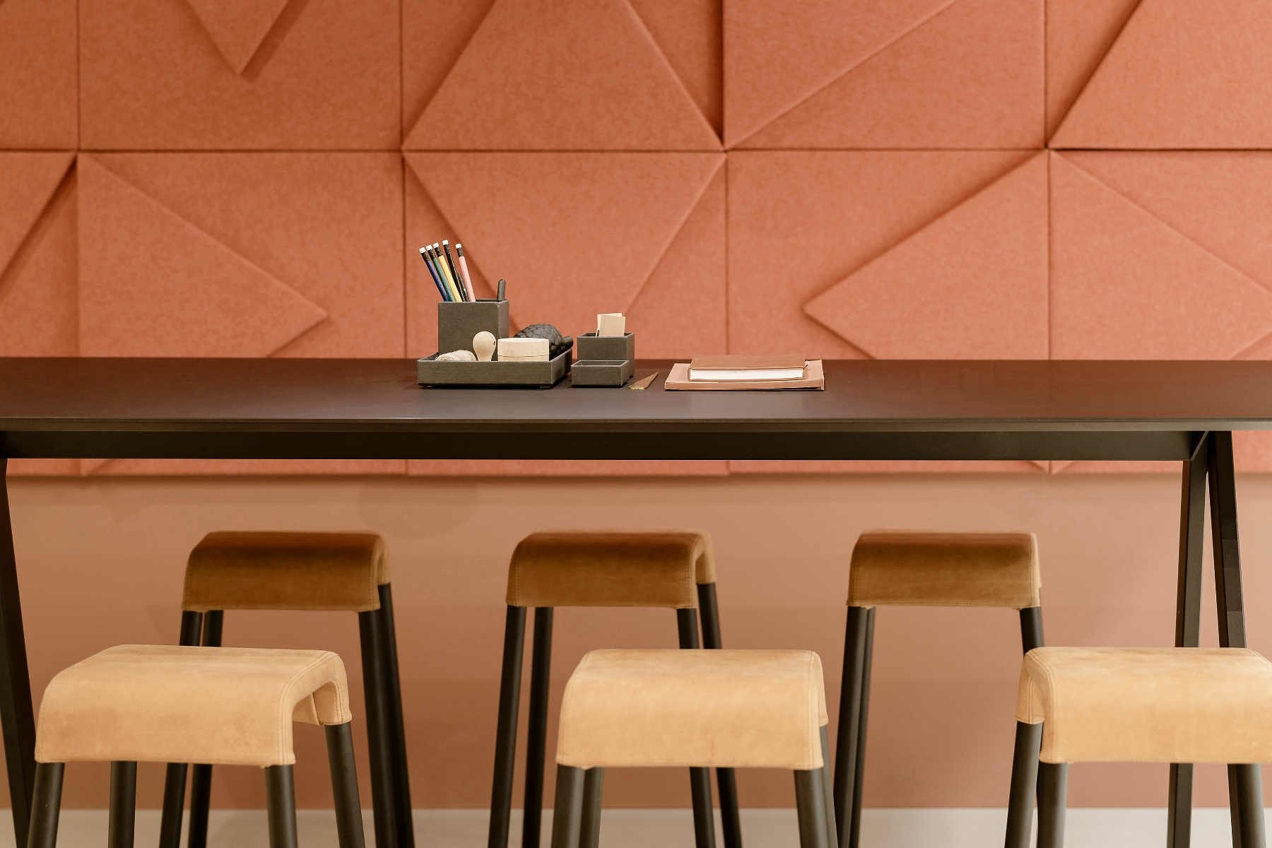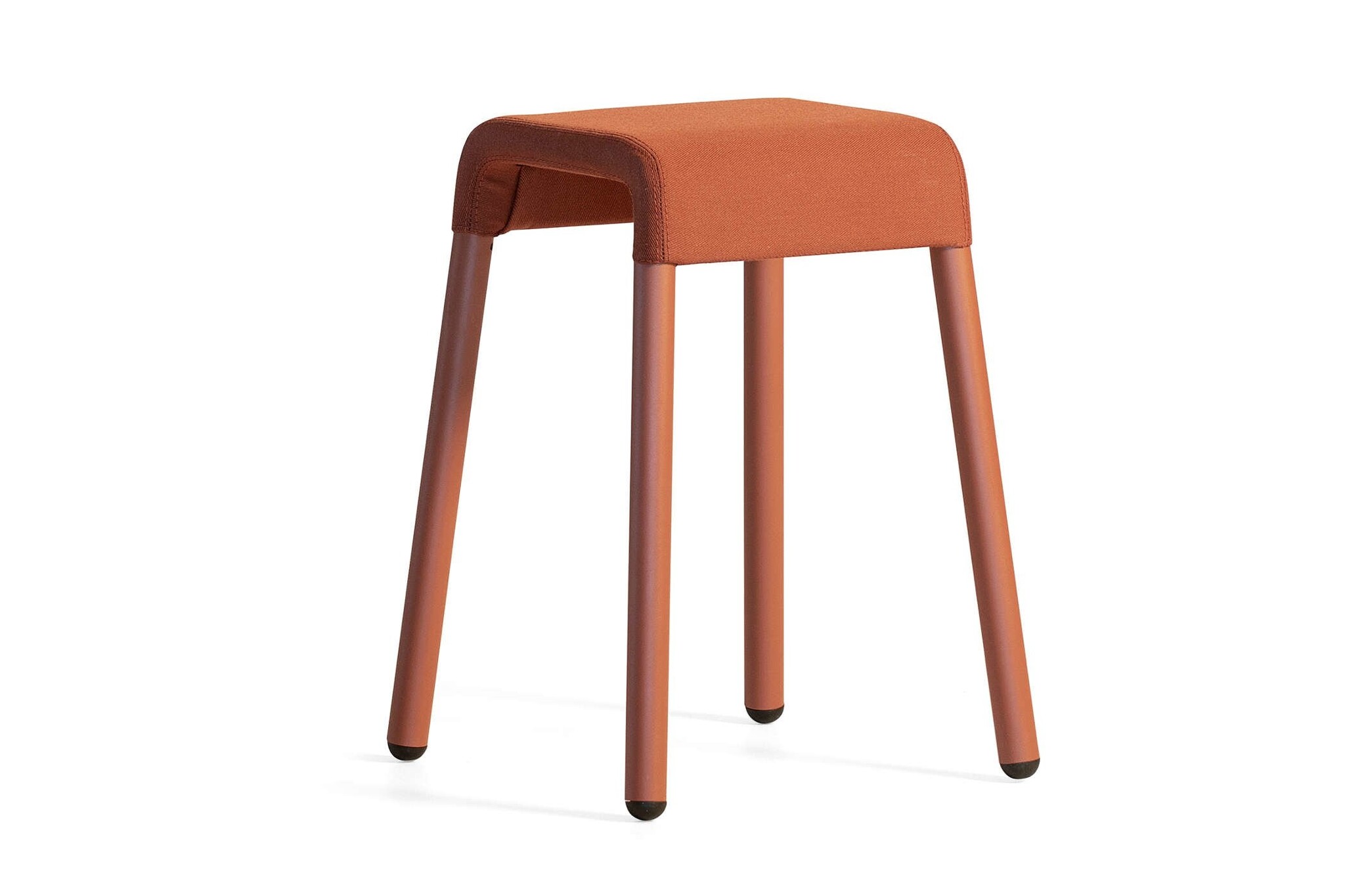 De kruk is gemaakt van een metalen frame met stoffen of leren bekleding, deze zijn in diverse kleuren beschikbaar.