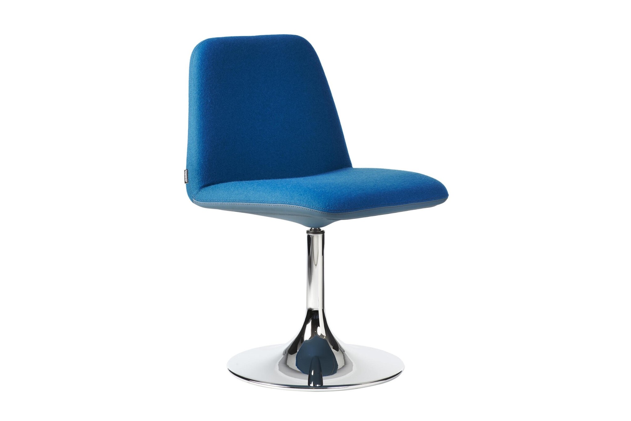 Het frame is van chroom Satin (Satin is alleen als special mogelijk) en leverbaar in meer dan 200 RAL kleuren en de stoel is te bekleden in 160 verschillende stoffen.