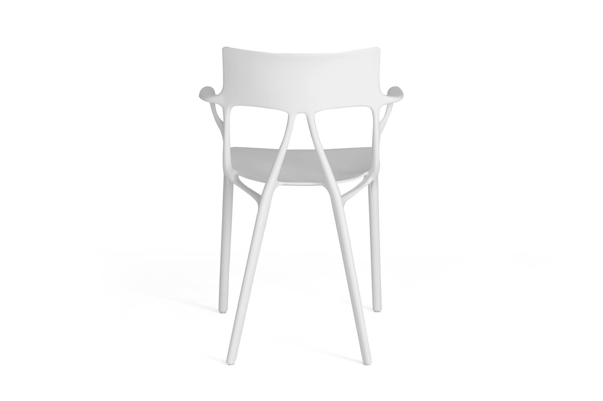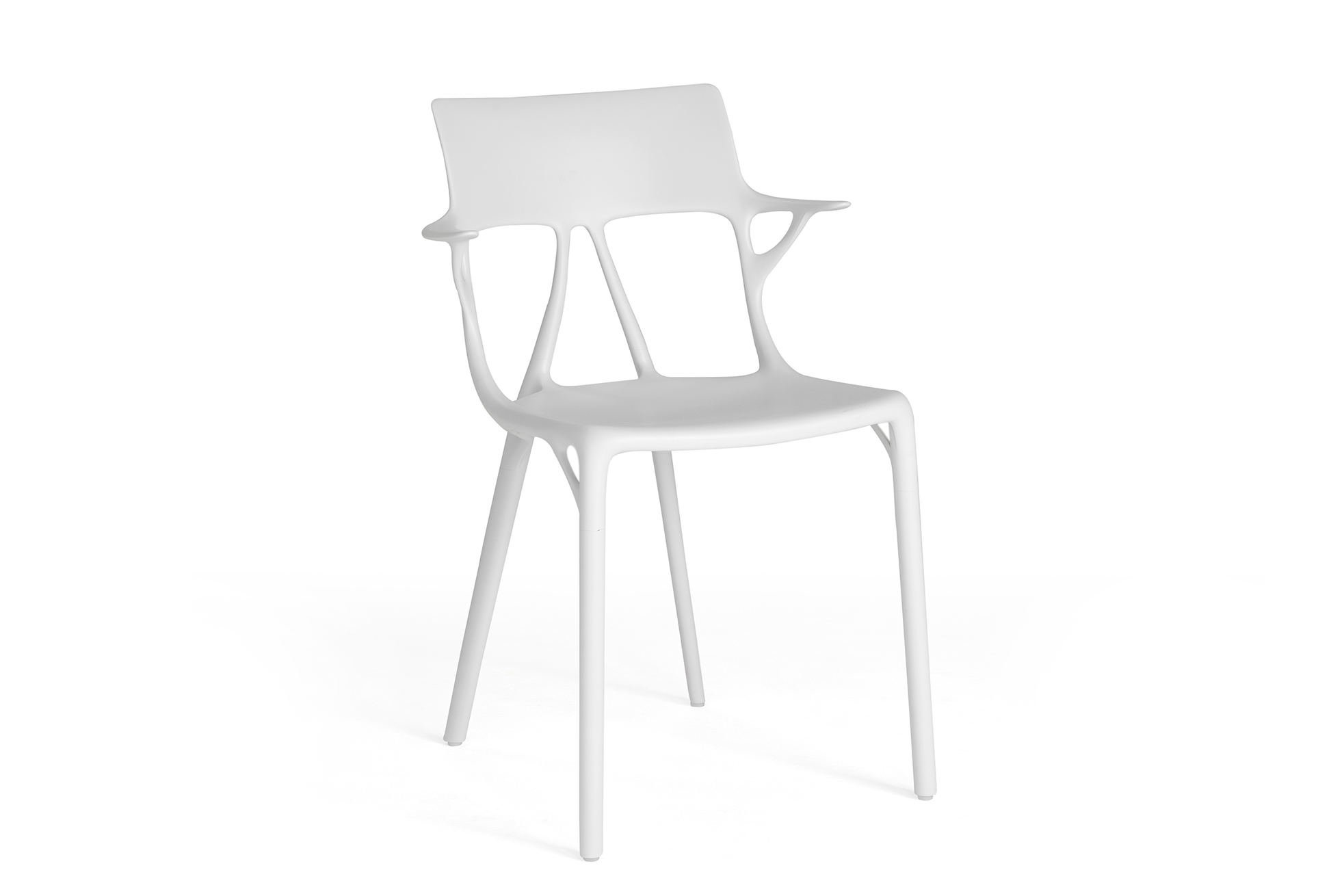 De Kartell A.I. Chair is een duurzaam gemaakte stoel van gerecycled materiaal en het mooie is, de stoel is zelf ook weer te recyclen. Ontwerper Philippe Starck heeft met kunstmatige intelligente (Artificial Intelligence) deze A.I. Chair ontworpen en is hiermee een duurzame kant ingeslagen. Deze stoel is binnen en buiten te gebruiken. Zo past de Kartell A.I. Chair goed in vergaderruimtes, openbare (wachtruimtes) en horecagelegenheden zowel binnen als op het terras buiten.