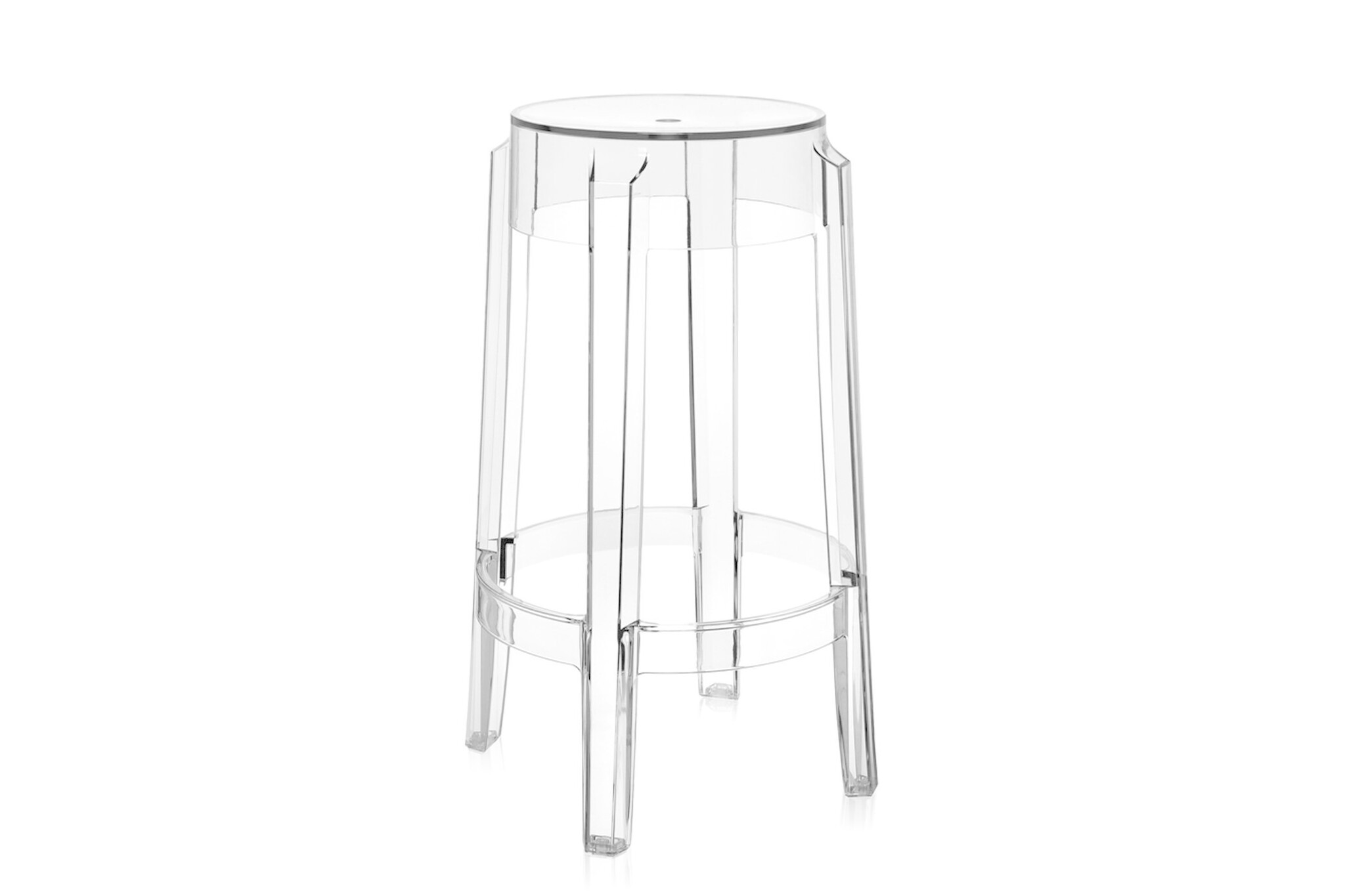 Kartell Charles Ghost is gemaakt uit een uniek stuk doorzichtig polycarbonaat, dankzij dit materiaal is de barkruk | hoge kruk zowel binnen maar ook als buitenmeubilair te gebruiken. De Charles Ghost is beschikbaar in drie verschillende hoogtes. Het brede kleuren programma (doorzichtige en ondoorzichtige kleuren) maakt veel kleurcombinaties mogelijk. Materialen