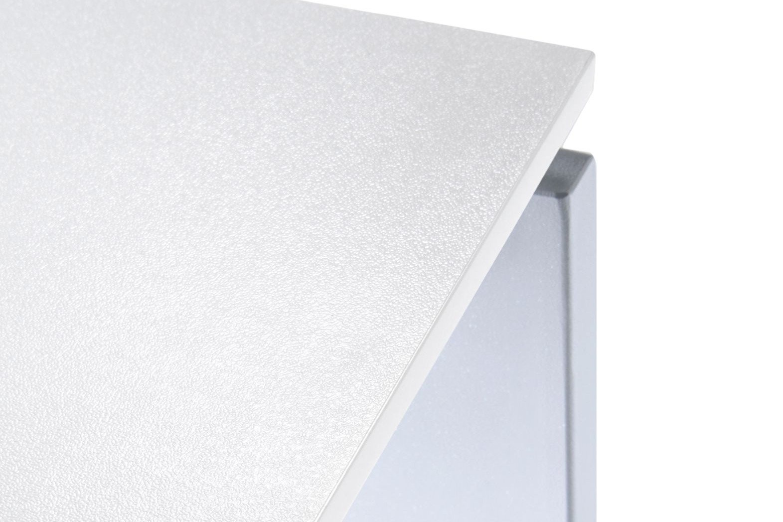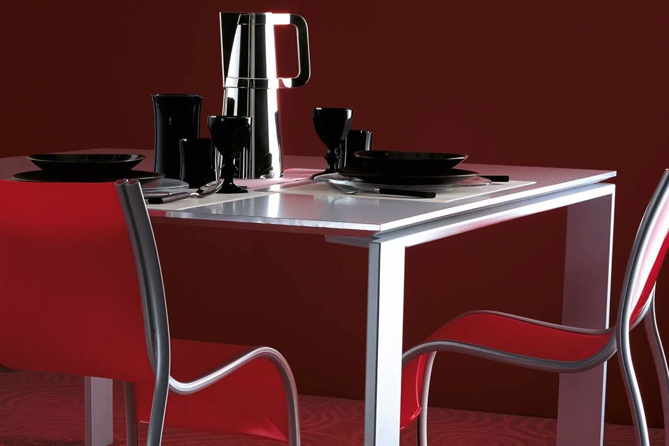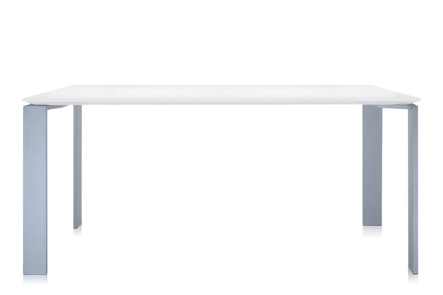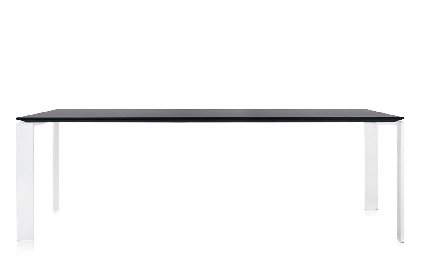 Kartell Four een functionele en verfijnde tafel. Dankzij de elegante designoplossing maakt de positie van het tafelblad het mogelijk om makkelijk ladekastjes of meubilair voor computers op te stellen. De Four tafel is beschikbaar met een tafelblad in gelaagd laminaat van 2,5 cm dik op een structuur van gevermist staal. Het gelamineerde aluminium blad maat de Four representatieve tafel, niet alleen ideaal als vergadertafels of directiebureaus maar ook geschikt voor de woonmarkt. Kartell Four varianten:Four tafelblad in gelaagd laminaat van gevernist staal