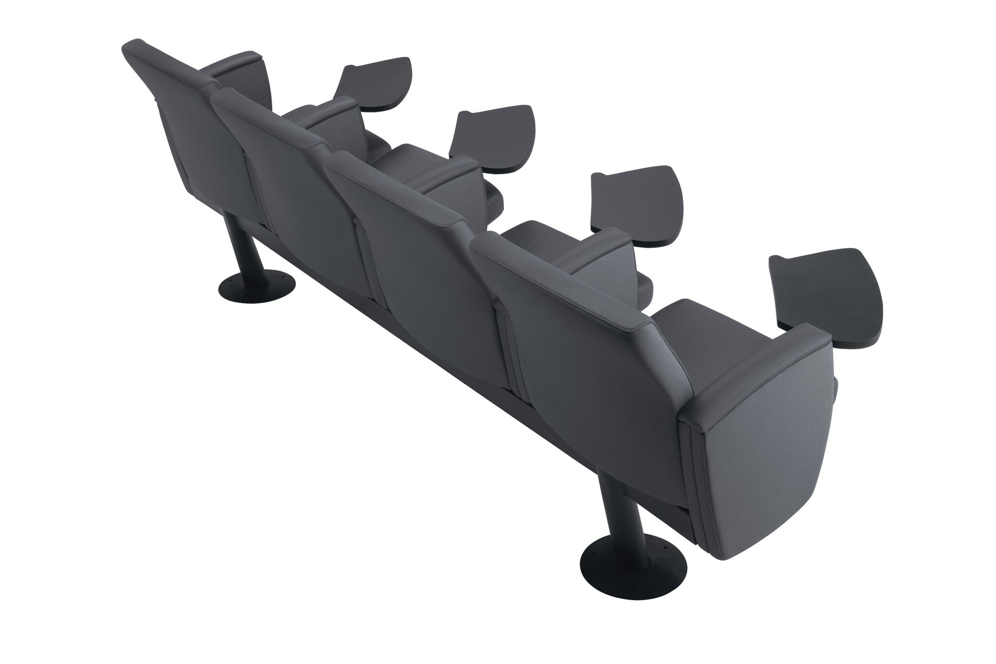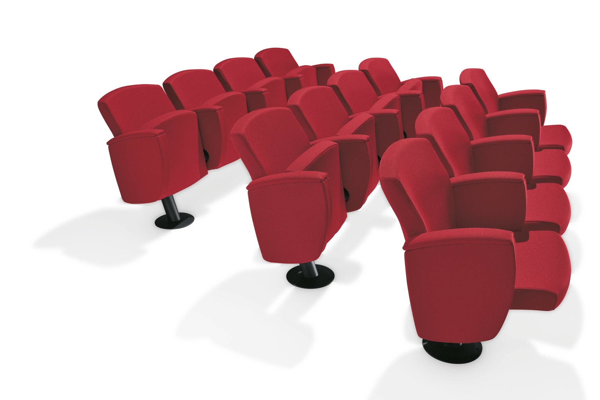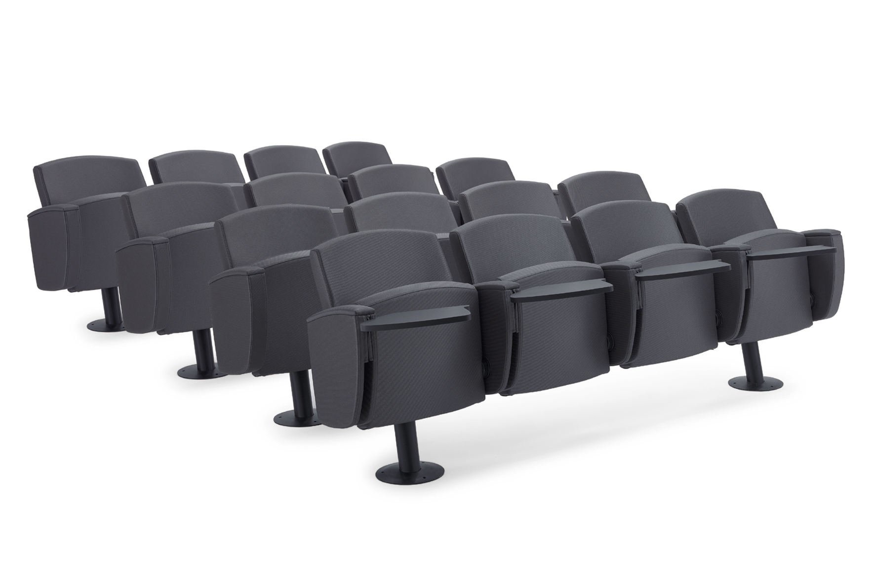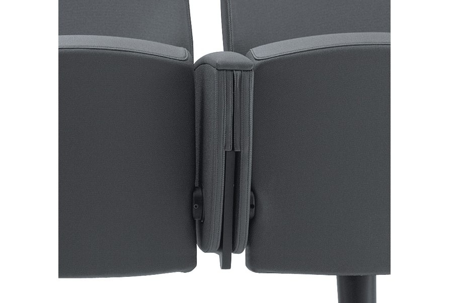 Bioscoopstoel | zaalstoel met een gewatteerde zitting. De Kadenza heeft een steunbalk waar maximaal 4 stoelen op bevestigd kunnen worden. Het frame en de steunbalk zijn gemaakt van kras vast staal uitgevoerd in het zwart. De zitting, rugleuning en armleuning zijn bekleedt met een stof uit de Kastel stoffencollectie. Optioneel kan de Kadenza stoel voorzien worden van een wegklapbaar schrijfblad.