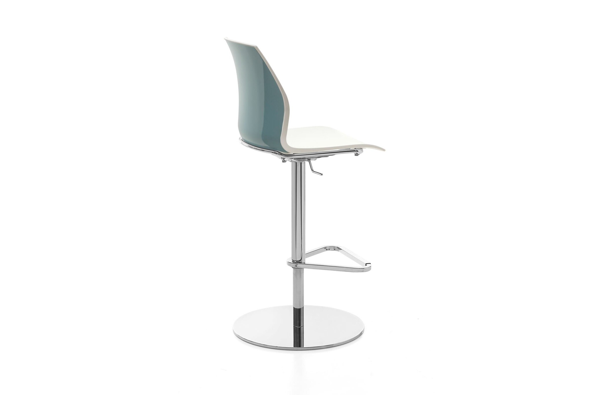 Een multifunctionele kruk met een grote variatie onderstellen en mogelijkheden om de kunststof zitschaal uit te voeren. De kruk heeft meerdere uitvoeringen, waaronder de Monocolor of Bicolor voor het persoonlijke accent in uw bedrijf of instelling. De Bicolor versie heeft een witte zitschaal waarbij de achterzijde van de rug in hoogglans contrasterende kleur is uitgevoerd, de Monocolor is geheel in één kleur. Naast wit is er de keuze uit: zwart, beige, groen, donkergrijs, oranje, donkerblauw en rood. Tevens is er de mogelijkheid om te kiezen voor een gestoffeerde variant met een opdekstoffering op de zitting of de kuip geheel rondom in een of twee kleuren. Materialen