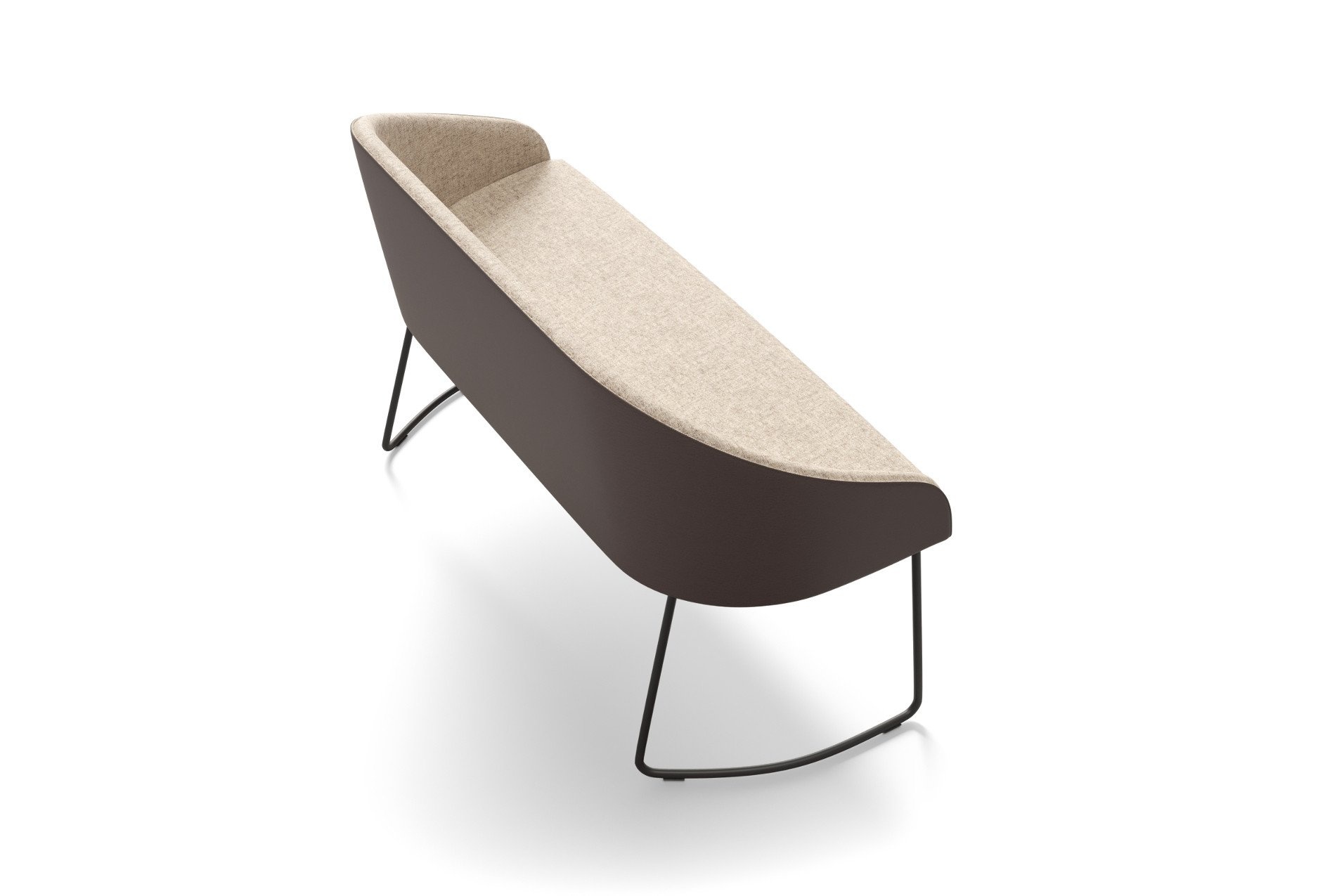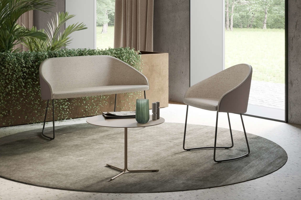 Het onderstel van deze 2-zitsbank betreft een slede. Dit onderstel kan een zwarte, witte of chroom kleur hebben.