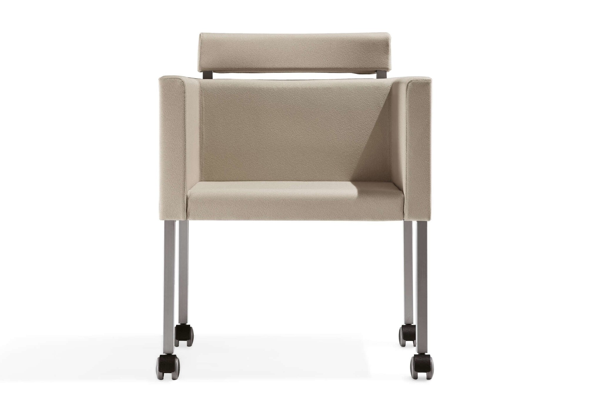 Kastel Kuadrella is een stoel op wielen of zonder wielen. Strak design en hoog zitcomfort vanwege de optionele hoofdsteun. Over Kastel