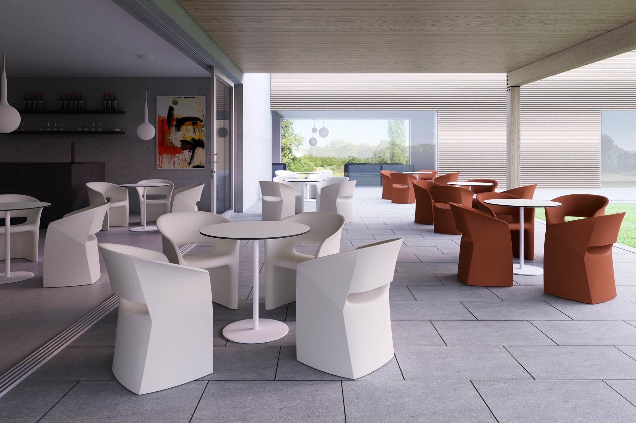 Deze stoel van kunststof (polyethyleen) is te gebruiken voor binnen of buiten. Optioneel is een uitneembaar kussen voor het zitgedeelte leverbaar. Kleuren Kastel Kuark