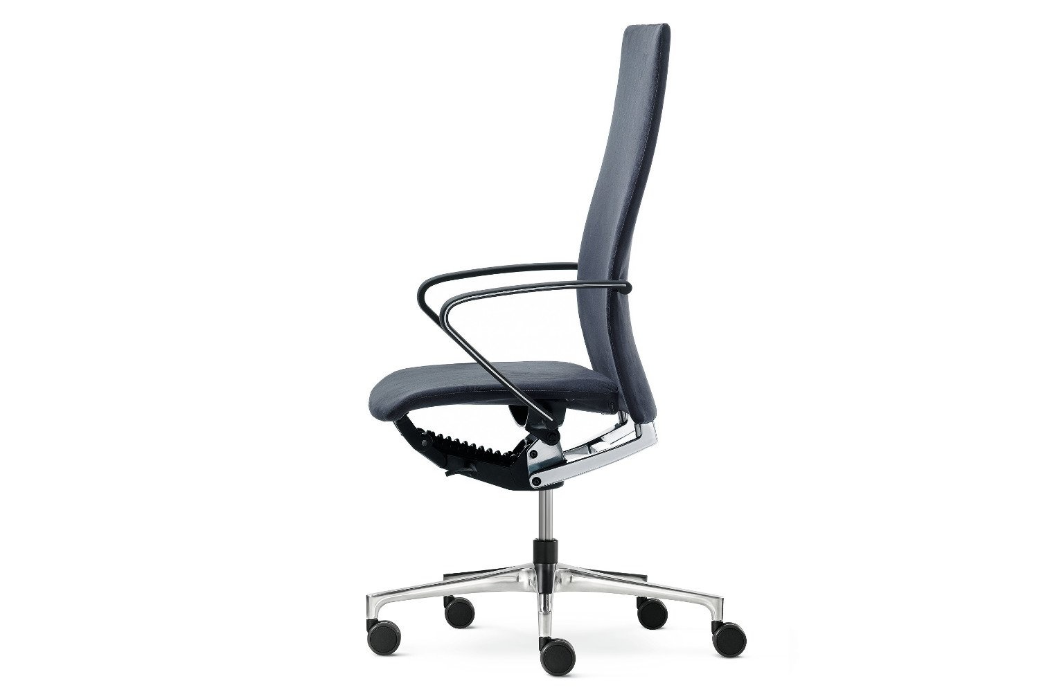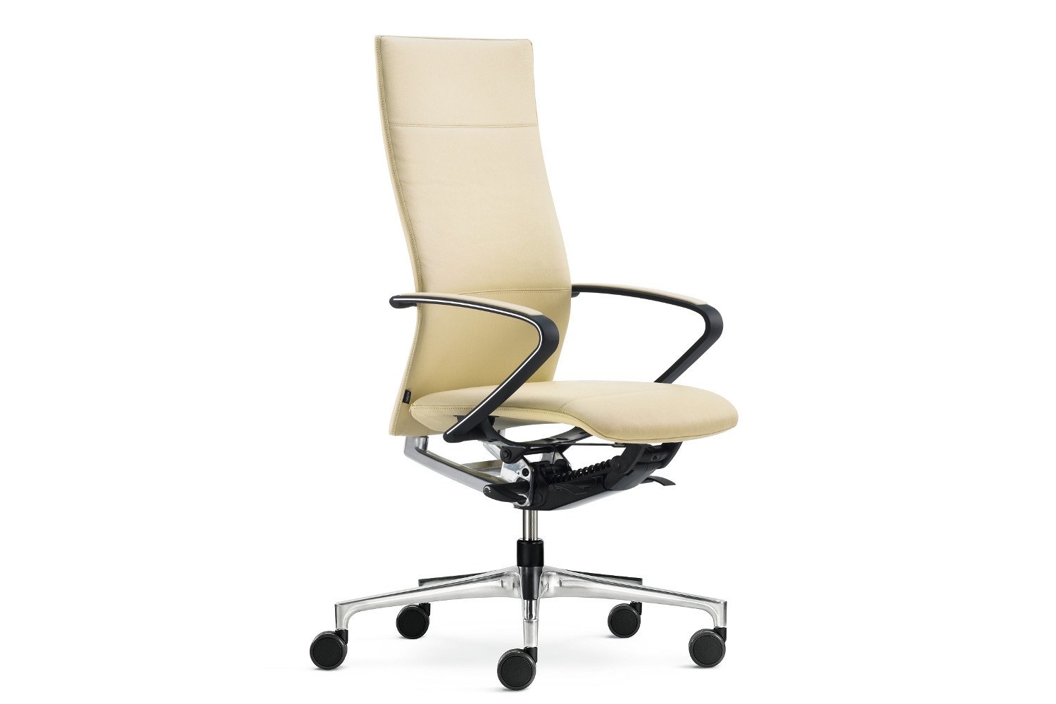 Bij de Ciello bureaufauteuil is de consequente ondersteuning van de wervelkolom door de welving van de rugleuning duidelijk voelbaar. Het geheim van de minimalistische vorm zit hem in de innovatieve DLX duo-latex bekleding. De bureaustoel gaat nek- en rugpijn en algehele vermoeidheid tegen, voorkomt een ronde rug en biedt zachte ondersteuning door de DLX.