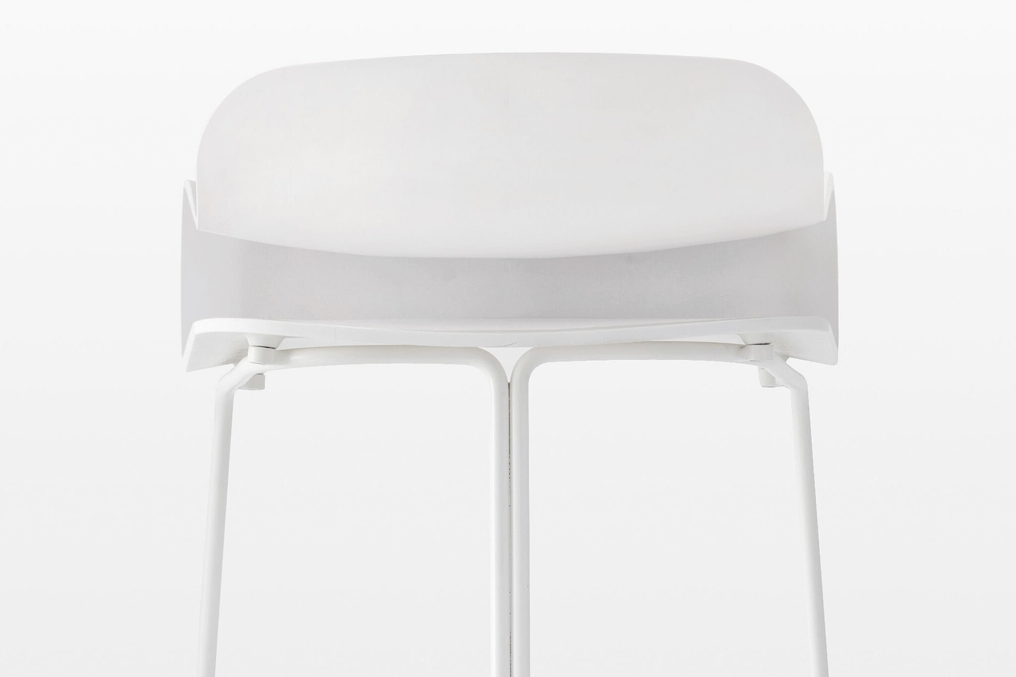 Kristalia BCN barkruk met draaischijf als onderstel die terugdraait. De zetel van de kruk is gemaakt van polybutyleentereftalaat, een zeer robuust en warmtebestendig kunststof gebruikt in de elektronica-industrie, terwijl het mechanisme, dat in hoogte verstelbaar is, vervaardigd is uit staal. De kruk is verkrijgbaar in de kleuren die kenmerkend zijn voor deze serie, namelijk wit, zwart, fluorescerend groen en koraalrood. De overige delen van de constructie zijn van gepolijste metallic zilver van kleur.