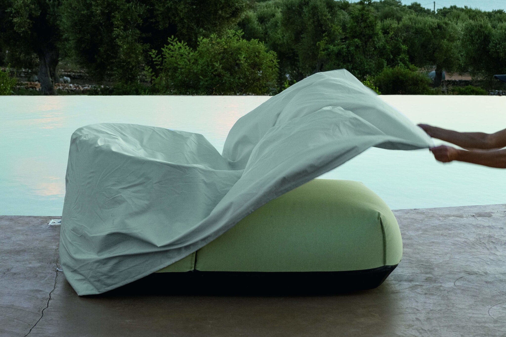 Aparte hoes ter bescherming van de fauteuil bij buitengebruik is optioneel leverbaar.