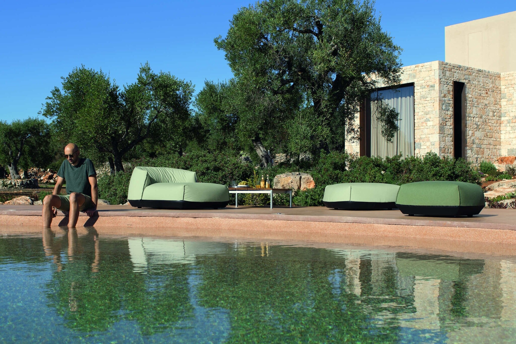 De loungefauteuils zijn zacht en comfortabel dankzij de flexibele polyestervulling die is ingesloten in een waterbestendige hoes.