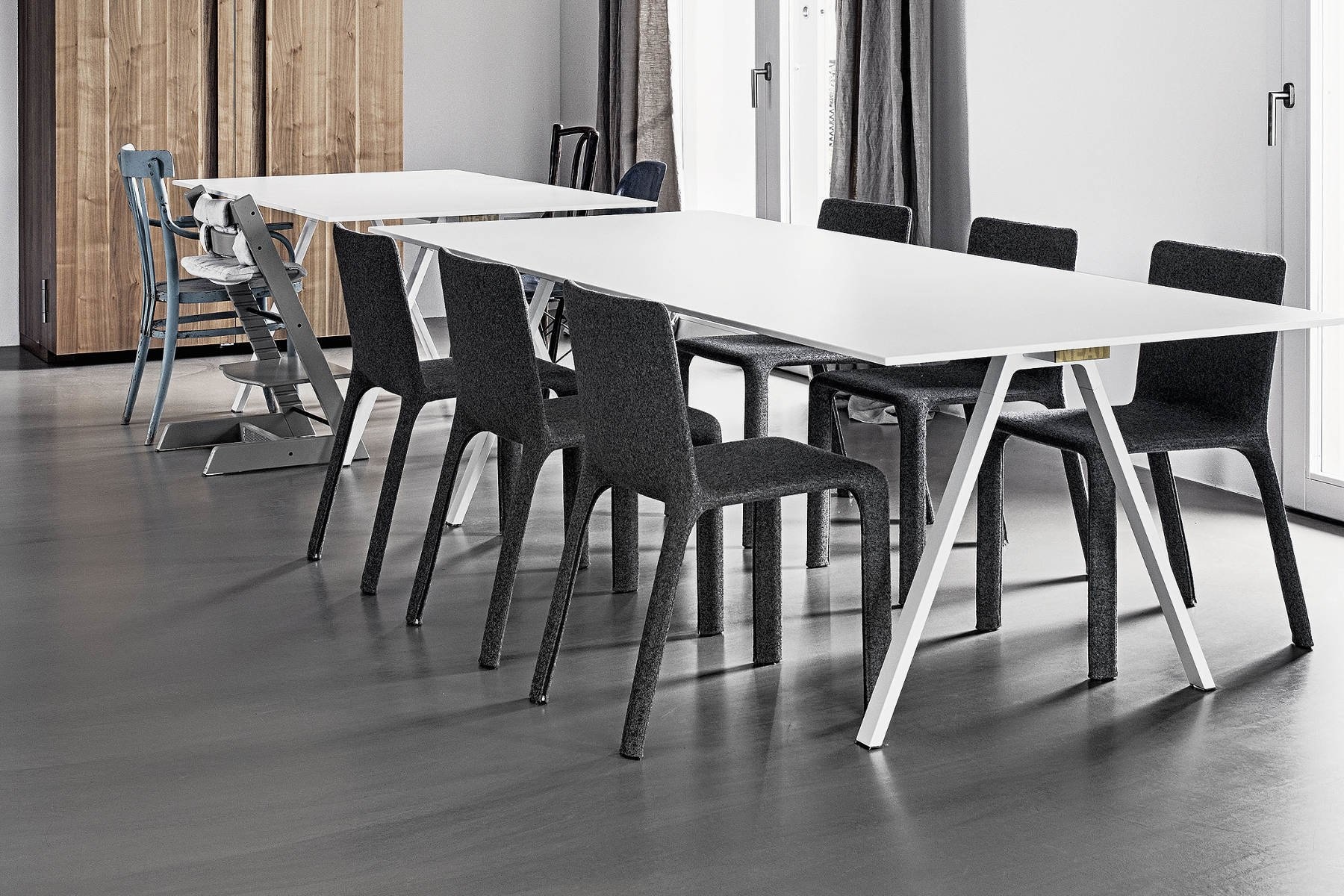 Het effect van de beklede stoel Joko is een van rustgevende eenvoud. Het metalen frame van de stoel geeft de structuur met een stevig skelet dat het lichaam een optimale ondersteuning geeft. De basis van de Joko gestoffeerde stoel is geplaatst in een vorm en volledig bedekt met een laag polyurethaanschuim. De Kristalia Joko stoel is leverbaar als stoel met gesloten of zonder armleuningen en als hoge stoel | barkruk.