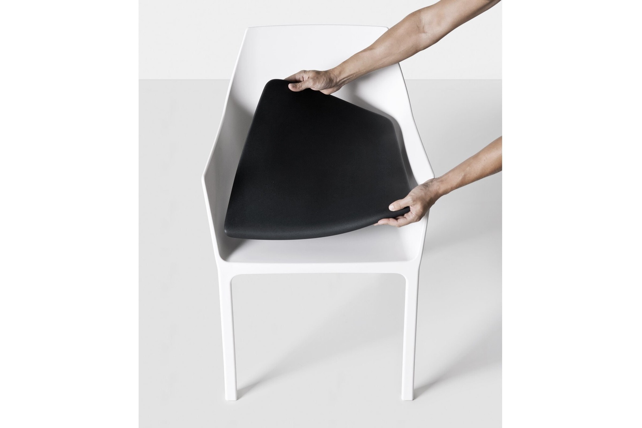 De Kristalia Mem stoel is visueel opvallend in de vorm. Deze plastic stoel met armleuningen is gemaakt van versterkt polypropyleen. Deze gebeeldhouwde plastic stoel met een ergonomische armsteun is ook waardevol in buitenruimtes, zo kan hij dienen als meubilair voor hotels, musea, kantoren en dergelijke. De Kristalia Mem wordt geleverd met afneembare kussens van zacht en flexibel polyurethaan in dezelfde kleuren als de stoel: deze zorgen voor een beetje meer comfort.