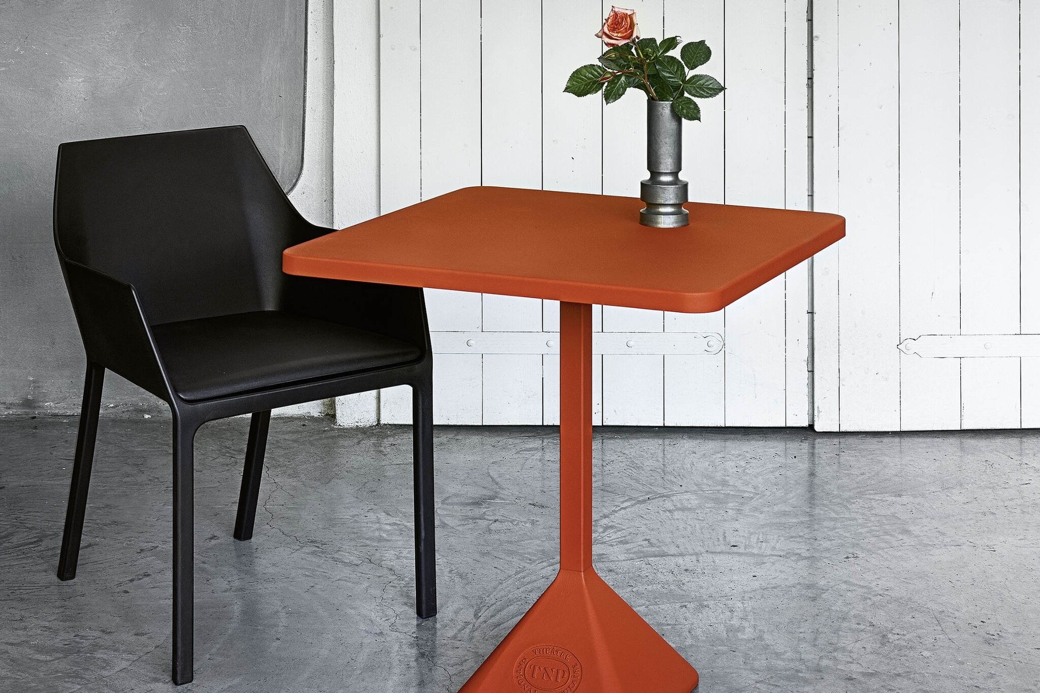 De Kristalia Mem stoelen kunnen ook buiten gebruikt worden en zijn bovendien stapelbaar.