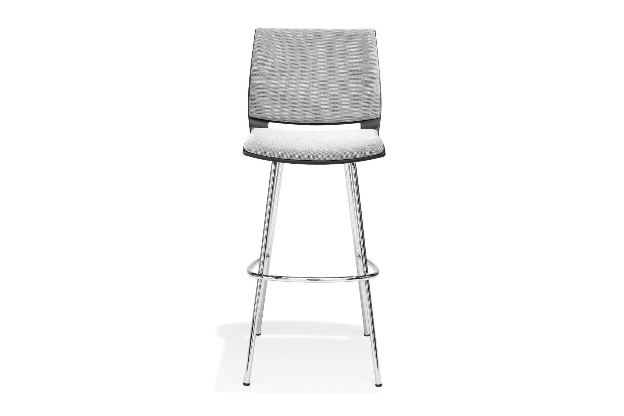 Barkruk met vierpootsframe is leverbaar met of zonder een zitting en/of rug met opdekstoffering.