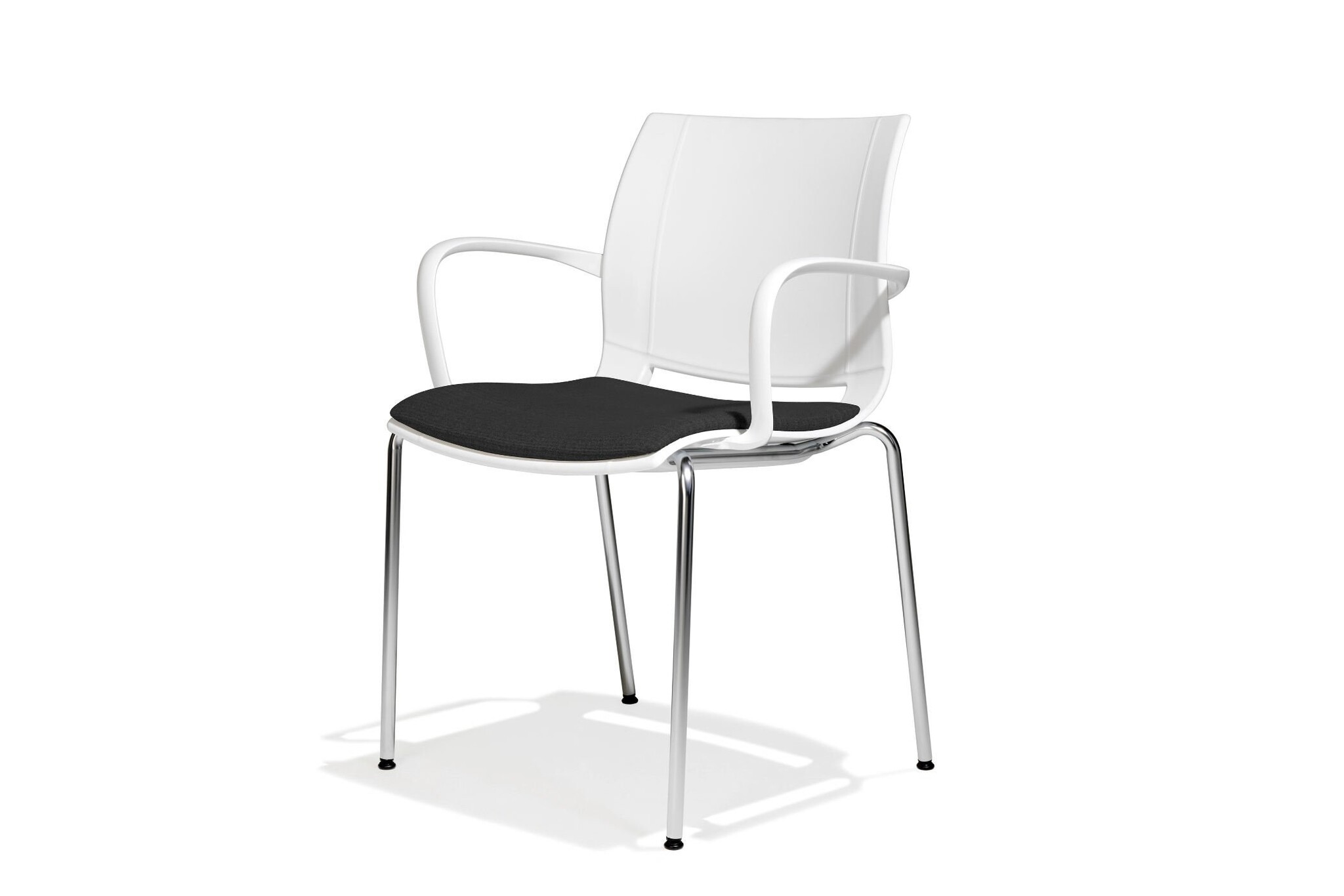 De zitschaal van alle stoelen is gemaakt van kunststof, maar kan ook geheel of gedeeltelijk (enkel de zitting) voorzien van opdekstoffering voor comfortabel zitten.