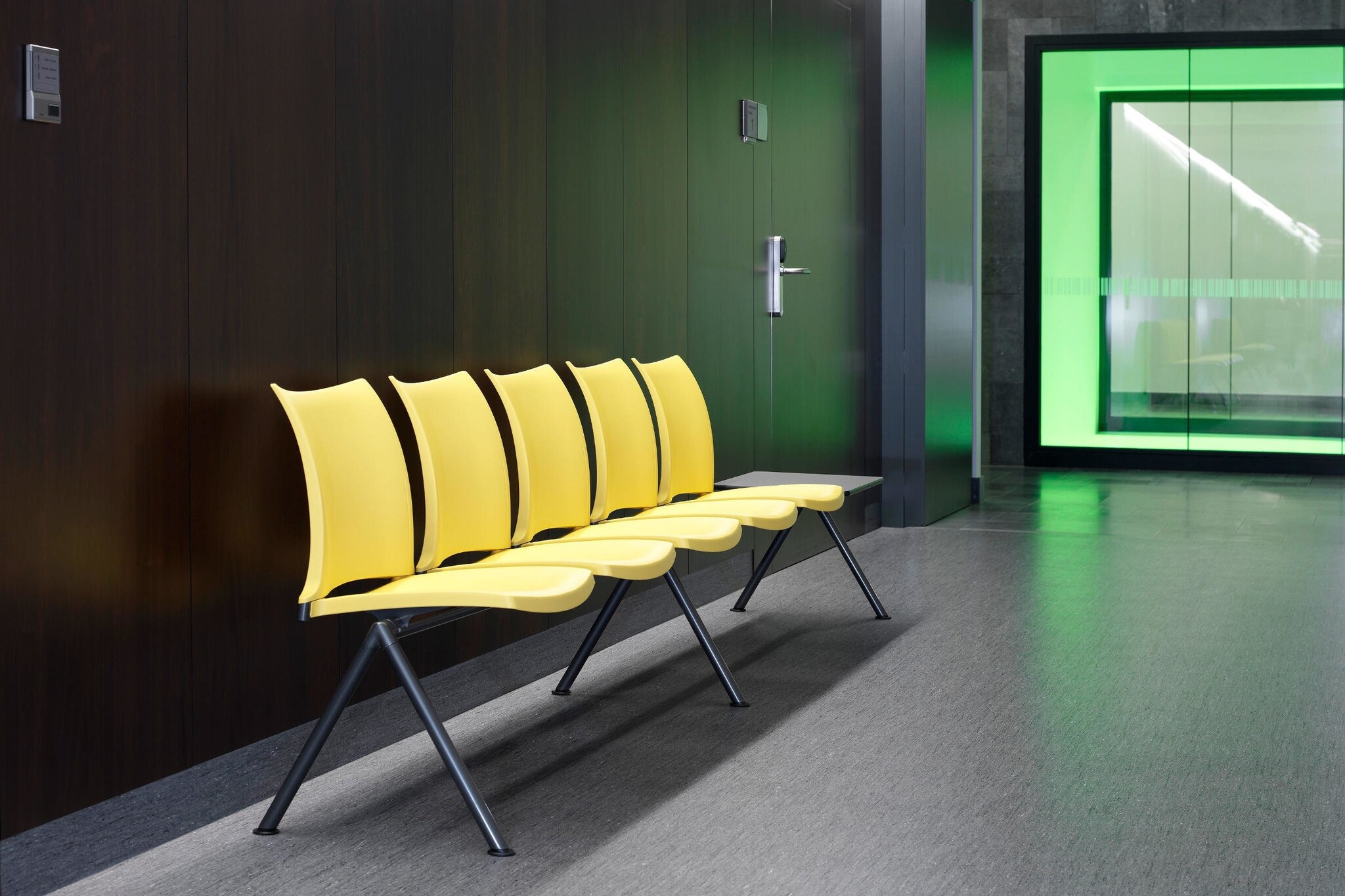 De Kusch + Co 2200 Hola is een wachtbanken | traversebank met een armlegger aan de buitenzijde en met een tafelblad voor bank (i.p.v. een zitschaal). Leverbaar met vloerbevestiging. Over Kusch + Co