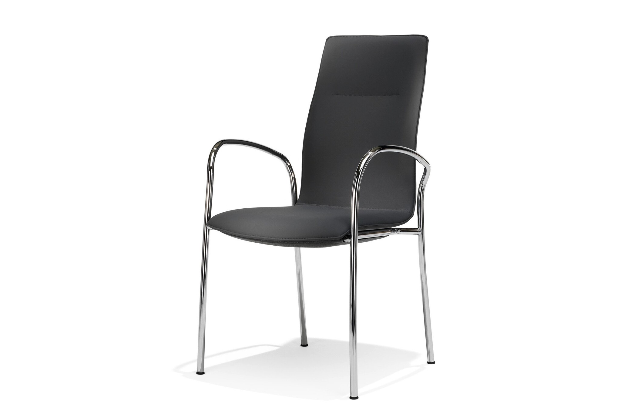 8530/8580 Stapelbare (5 of 6 stuks) en niet stapelbare slede-armstoel met normale of hoge rugleuning.