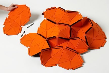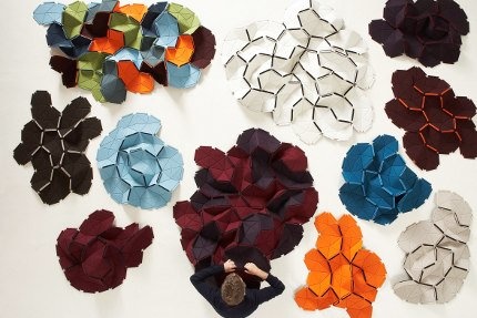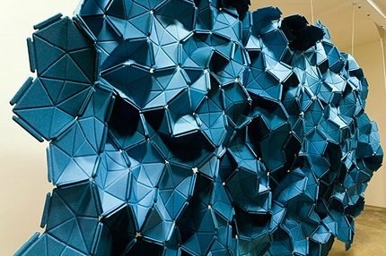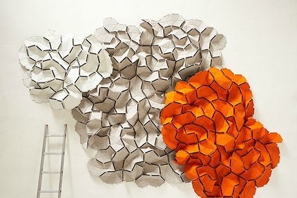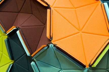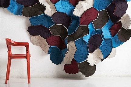 Kvradrat Clouds is een innovatief concept van in elkaar grijpende stof tegels. Clouds kunnen tot een geluidsabsorberende installatie gemonteerd worden en worden opgehangen aan de wand of het plafond. Met de uitnodigende onregelmatigheid van de tegels kunt u een unieke driedimensionaal effect produceren, u eigen stukje construeren. Zelfexpressie ligt in het hart van de aantrekkingskracht van Clouds. De tegels zijn gemaakt van een element en zijn bevestigd door de speciale rubberen banden. Het maken van uw eigen stuk is snel en eenvoudig, of u nu een eenvoudig ontwerp of een complexe decoratieve scherm of muur willen maken. U kunt de tegels eenvoudig rangschikken en herschikken om uw individuele stijl weer te laten spiegelen. Kvadrat Clouds zijn leverbaar in twee stoffen - Divina en Tempo. Tegels van Tempo, zijn verkrijgbaar in drie kleurcombinaties, waaronder: pittige oranje / bruin, donkerblauw / lichtblauw en lime groen / blauwe leisteen. Tegels van Divina zijn beschikbaar in: licht / donker blauw, licht / donker grijs, bordeaux / diep paars en zwart / wit.