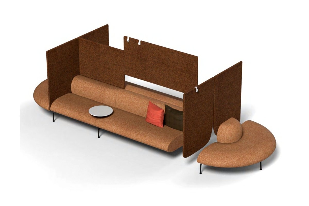 De gevoerde panelen, die eenvoudig te verwijderen of te verplaatsen zijn, creëren zo eenvoudig een werkruimte op de bank. In combinatie met de diverse accessoires, zoals tafels, USB-elektrische aansluitingen en jashaken verandert u zo de Couchette in extreem stille tijdelijke werkplekken.
