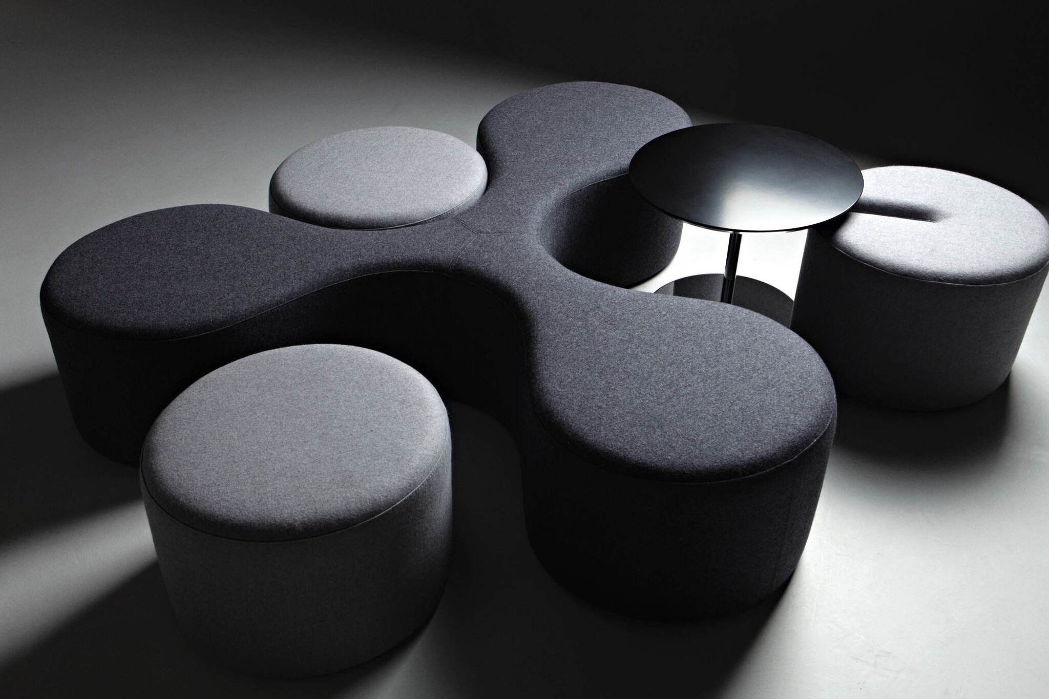 Een complete inrichting voor een entree, wachtkamer of andere openbare ruimte met zitelementen speelse vormen en kleuren. De zitelementen zijn met elkaar te combineren. De structuur van laCividina Molecule bestaat uit een houten frame bedekt met een polyurethaan vulling van verschillende diktes en polyester vezels. Te bekleden in leder of stof.