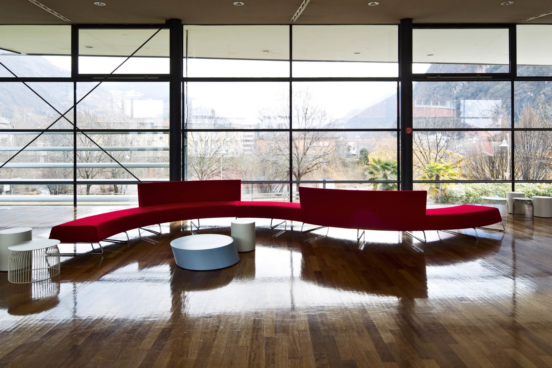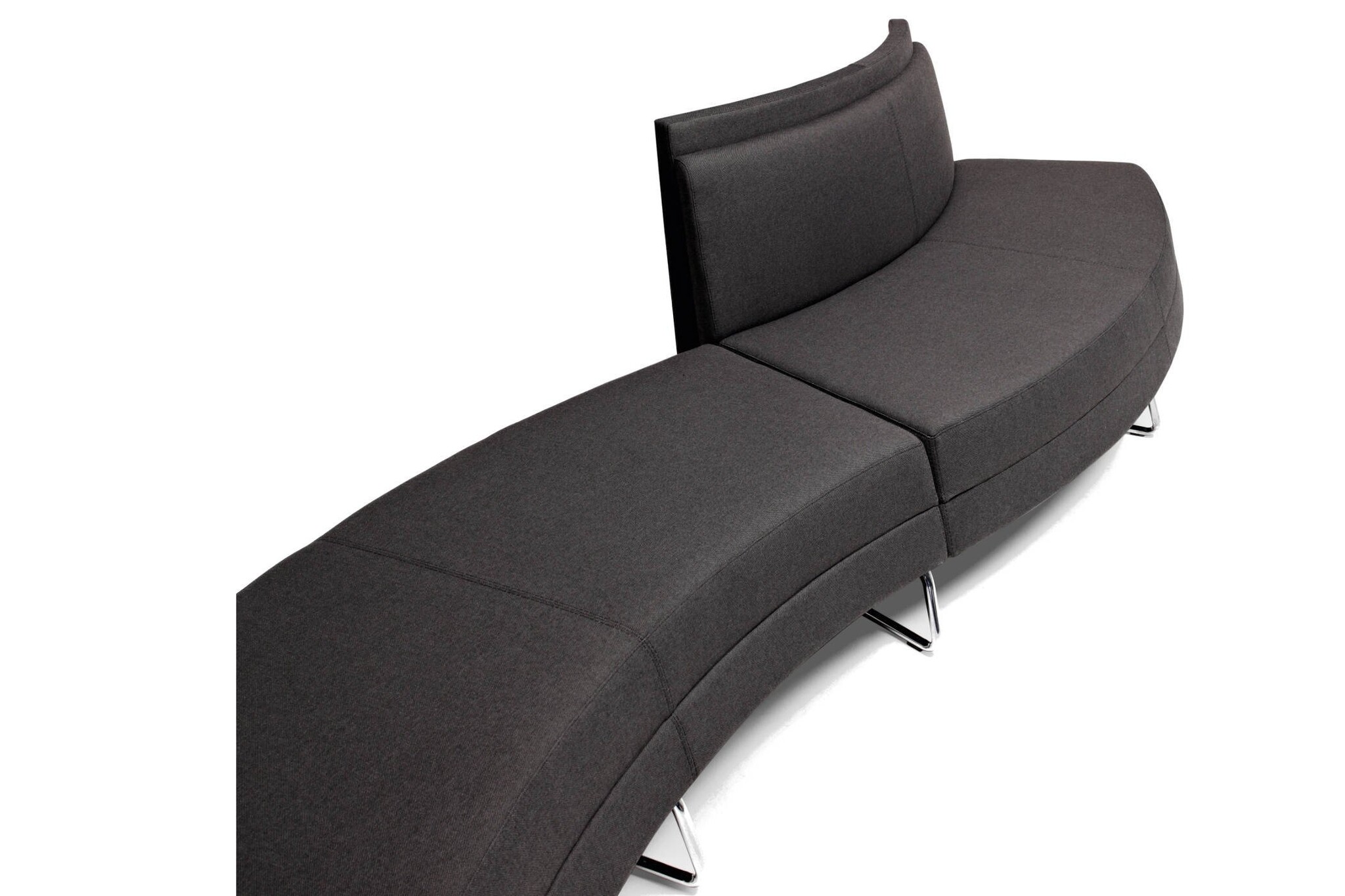 Deze collectie van modulaire banken is gebaseerd op lineaire of gebogen elementen. Dit geeft een enorm scala aan oplossingen, gekenmerkt door een frisse stijl. Design Mauro Fadel. De structuur bestaat uit een houten frame bedekt met een polyurethaan vulling van verschillende diktes en polyester vezels, met een zetel in een multiplex paneel.De slede is gemaakt van verchroomd metaal. Ze zijn bekleed in leer of stof.