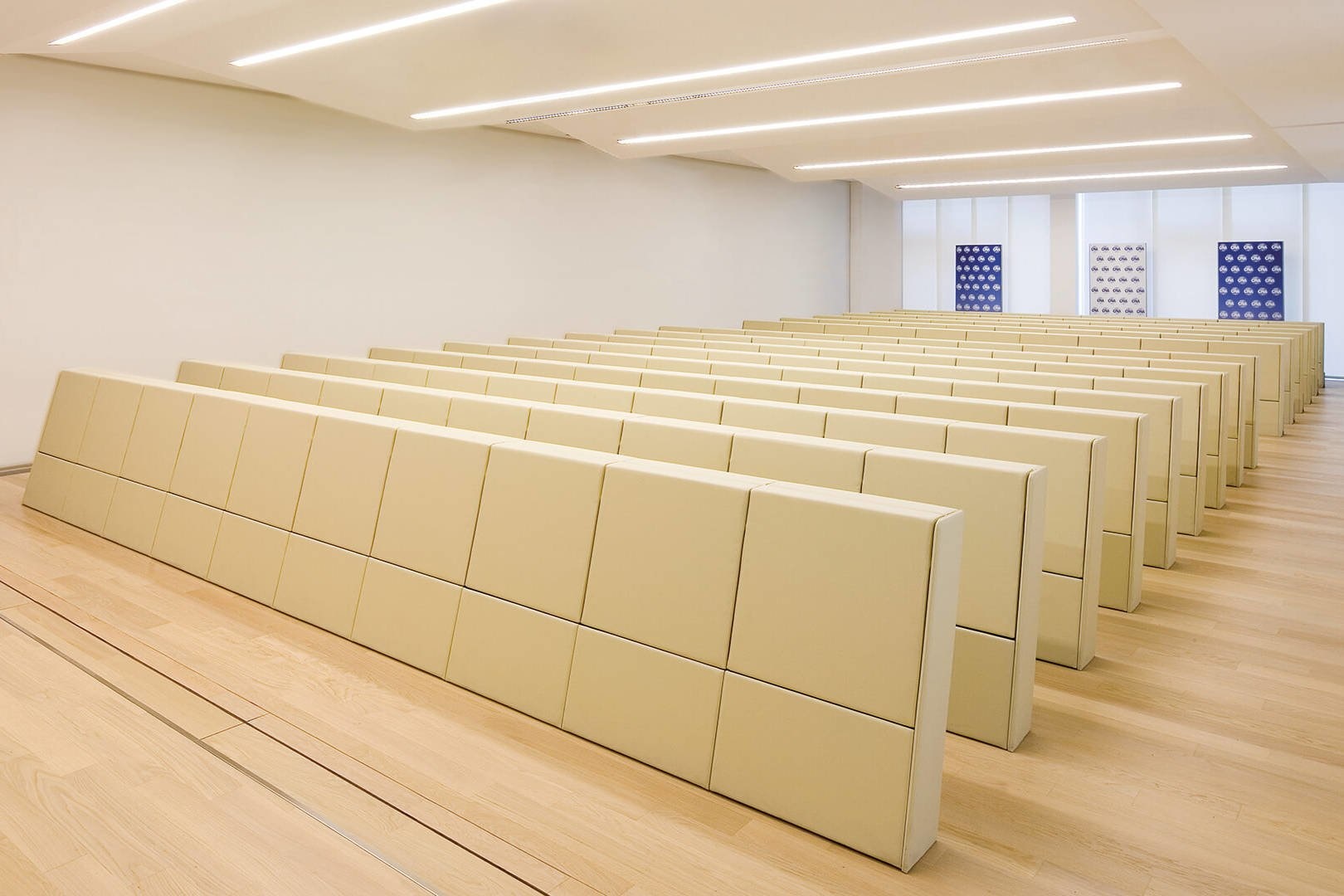 Is het magie? Daar lijkt het bij de Lamm Genya haast wel op. De Lamm Genya kan namelijk onder de grond verdwijnen. Met slechts één druk op de knop verdwijnen de Genya stoelen binnen mum van tijd onder de grond. Zo kunt een zaal vol stoelen supersnel opruimen. De Genya stoel is een super efficiënt meubel. Niet alleen kan het onder de grond verdwijnen, ook het ontwerp is zeer uniek. De stoel lijkt op het eerste gezicht een soort muur, maar u kunt de zitting uitklappen, waarbij tevens armleuningen automatisch meegaan. Dit is de perfecte oplossing voor congressen, lezingen, auditoria, collegezalen, bioscopen of theaters. De Lamm Genya is door het optimale comfort een perfecte bioscoopstoel of theaterstoel. We kunnen zeggen dat Lamm het Genya meubel tot een zeer populaire zaalstoel heeft gemaakt. Meer over de Lamm Genya