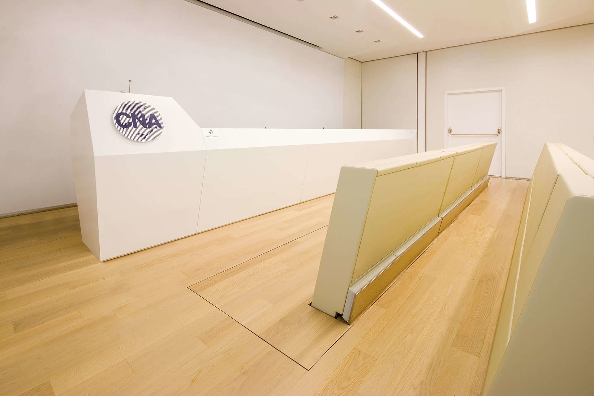De Lamm Genya beschikt over het Floor Technology folding system, wat ervoor zorgt dat het meubel netjes onder de grond opgeborgen kan worden, waardoor de ruimte in één keer leeg is.