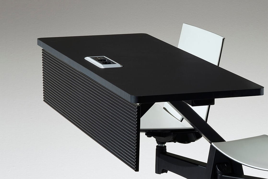 Het is mogelijk om meerdere ST12-13 bureaus aan elkaar te koppelen. Zo kunt u in de collegezaal één geheel creëren en tevens ook werkplekken in groepsverband neerzetten.