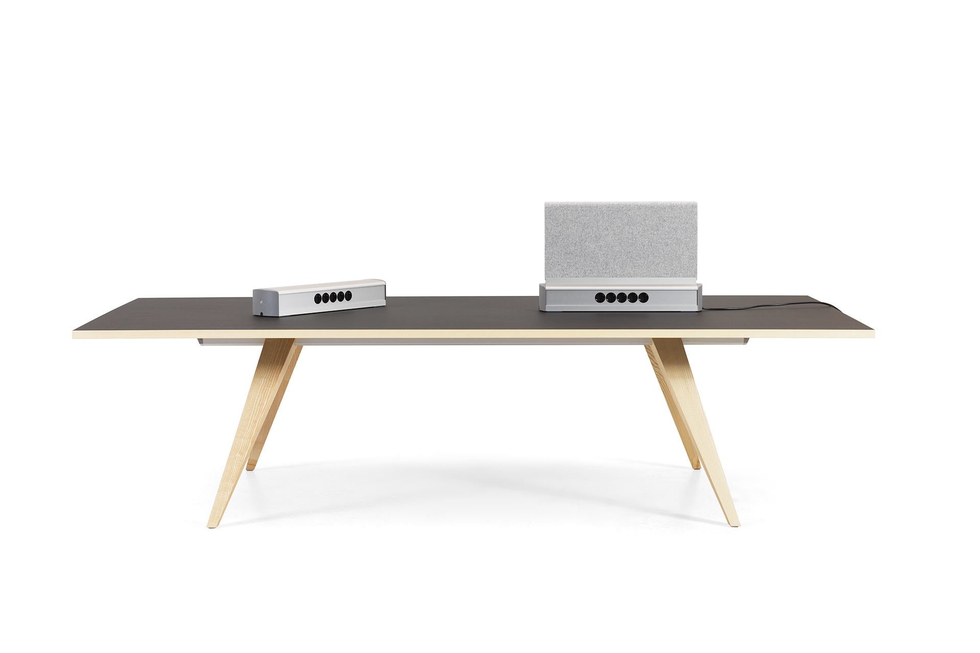 De Lammhults Ponto rechthoekige tafel is maar liefst ruim 5,5 meter lang en heeft toch slechts 4 poten nodig! Aan deze extreem lange tafel kunt u een grote groep plaatsen in uw vergaderruimte, boardroom of congreszaal. Het houten onderstel heeft een warme uitstraling. Voor een informeler overleg is de ronde tafel uit deze collectie een geschikte oplossing. Ook kunt u de tafels in de horeca plaatsen. Even snel een mail beantwoorden of andere korte werkzaamheden? Plaats dan de Detach op de tafel en u heeft meteen stroom en een scherm om ongestoord te kunnen werken.