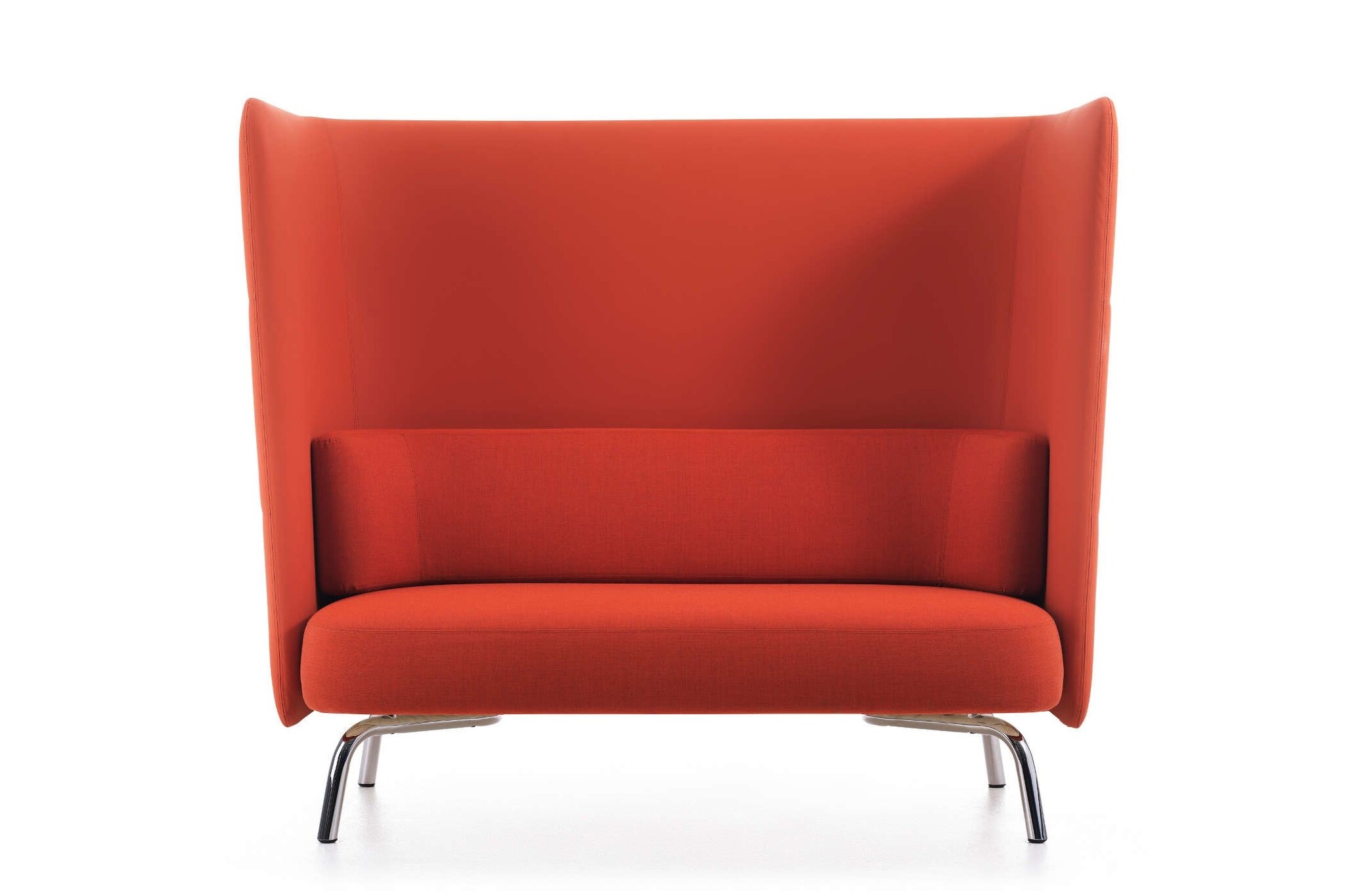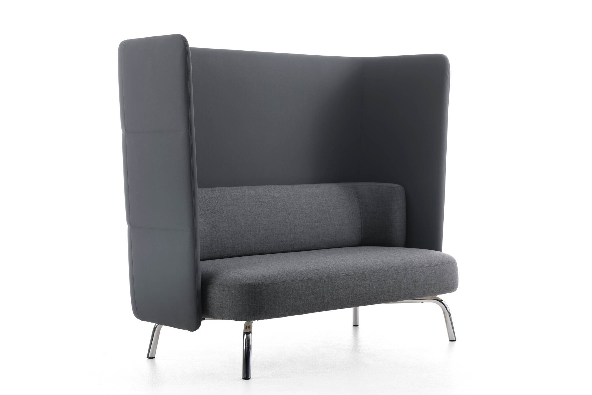 De Portus van Lammhults bestaat uit diverse hoge en lage zitelementen, zoals een bank voor meerdere personen en een stoel. Ontwerp Peter Foersom en Peter Hiort-Lorenzen. Kenmerken Lammhults Portus