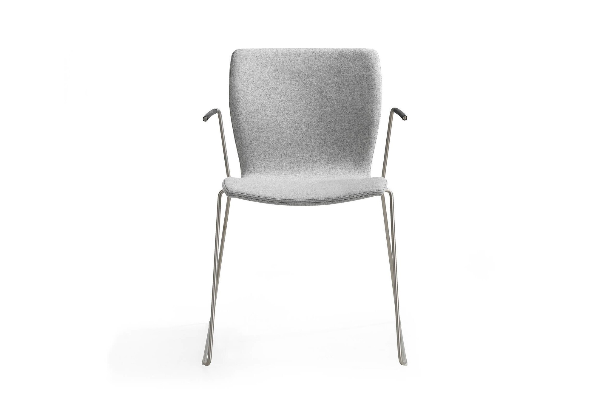 De gevormde zitschaal is verkrijgbaar in natuurlijk of gebeitst as. Optioneel is de stoel te bekleden in stof of leder en voorzien van een veerkrachtig polyurethaan schuim. Deze stapelbare stoel is leverbaar met of zonder armleuningen. De armleuning is van zwart plastic.