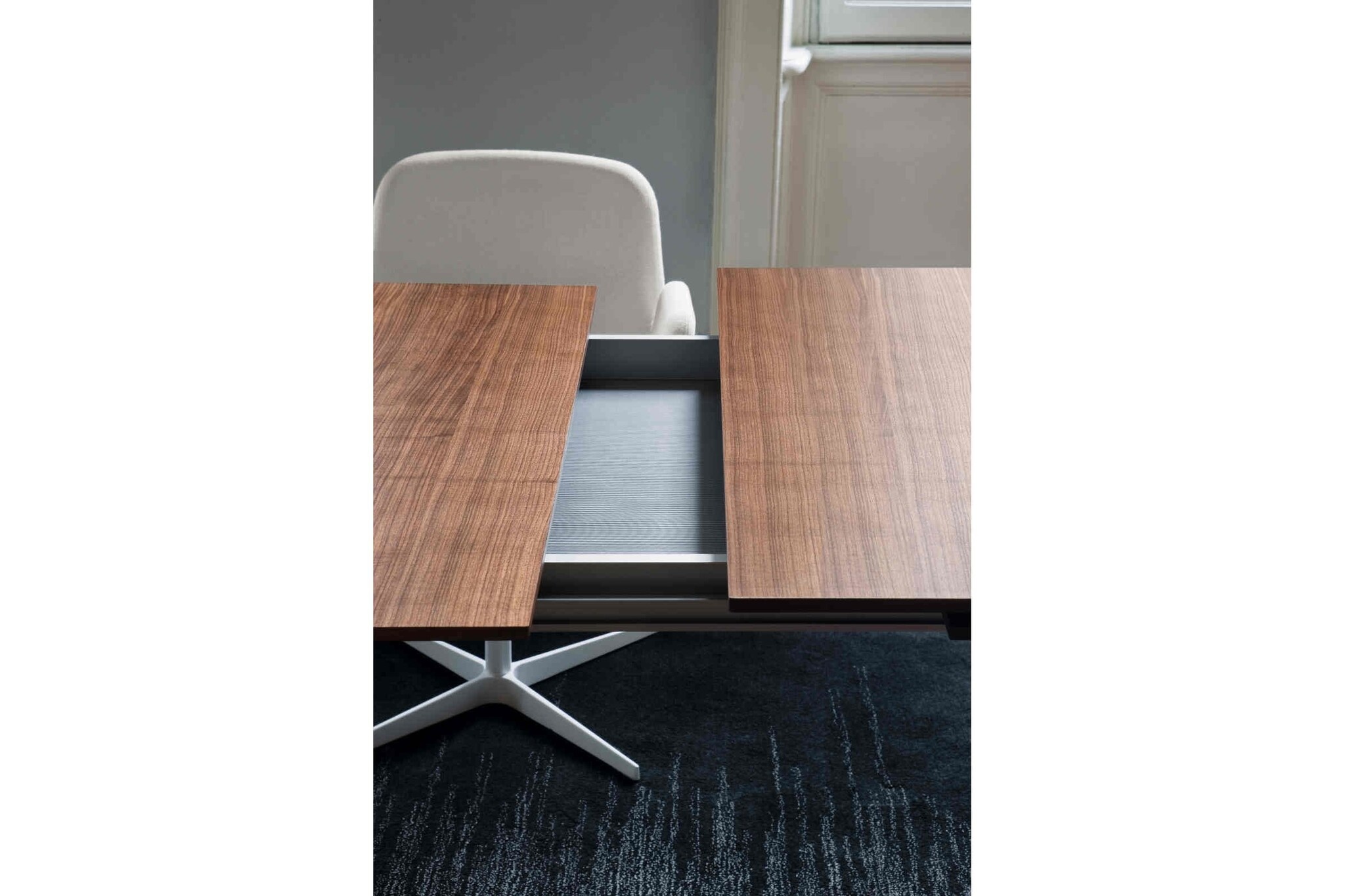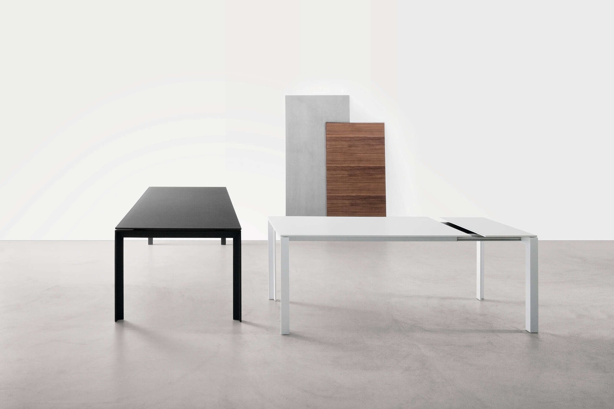 Een uitschuifbare tafel met frame in gelakt aluminium. Apta is voorzien van een tafelblad uitgevoerd in honingraat aluminium, welke ook kan worden geleverd in gelamineerd of walnoot Canaletto. Apta is tevens verkrijgbaar met een vast tafelblad. Deze kan in beton- of gehard glas, in de kleuren wit of donkergrijs worden uitgevoerd. De tafel heeft een lichte, moderne uitstraling en is toepasbaar in vele diverse ruimtes, zoals op kantoor en in huis. Lapalma Apta kan verder indien nodig, worden verlengd.Over Lapalma