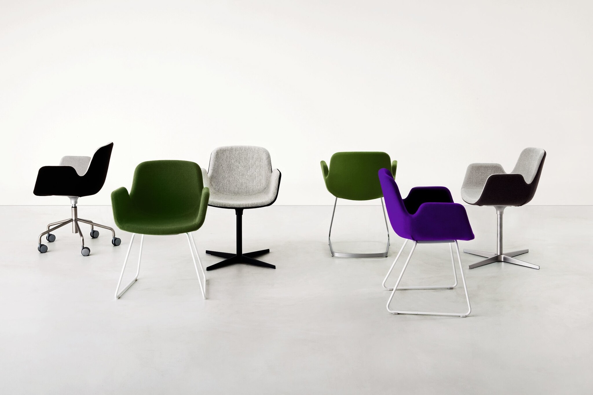 De Lapalma Pass stoel is gemaakt van brandwerend schuim en is bedekt met stof, leer of kunstleer in een combinatie van twee kleuren. Verkrijgbaar met een draaibare kruisvoet van aluminium of als in hoogte verstelbare vergaderstoel op wielen. Over Lapalma