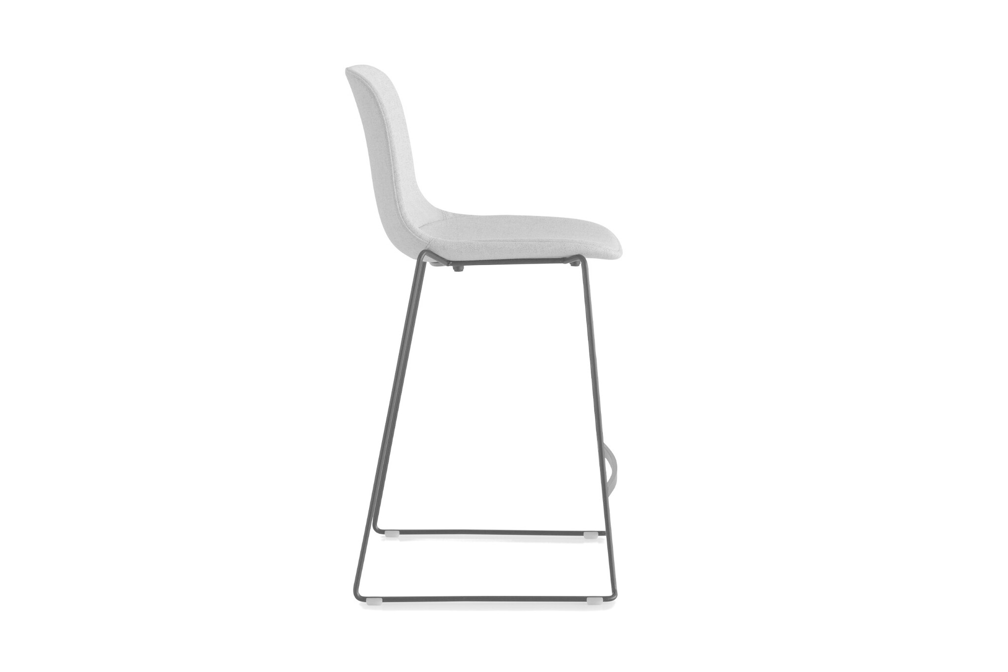 De stapelbare barkruk heeft een zitschaal in polypropyleen en geïntegreerde naadloze zitting in polypropyleen met bekleding aan de voorzijde of volledig gestoffeerd in de stoffen Jet, Medley of Tonica.
