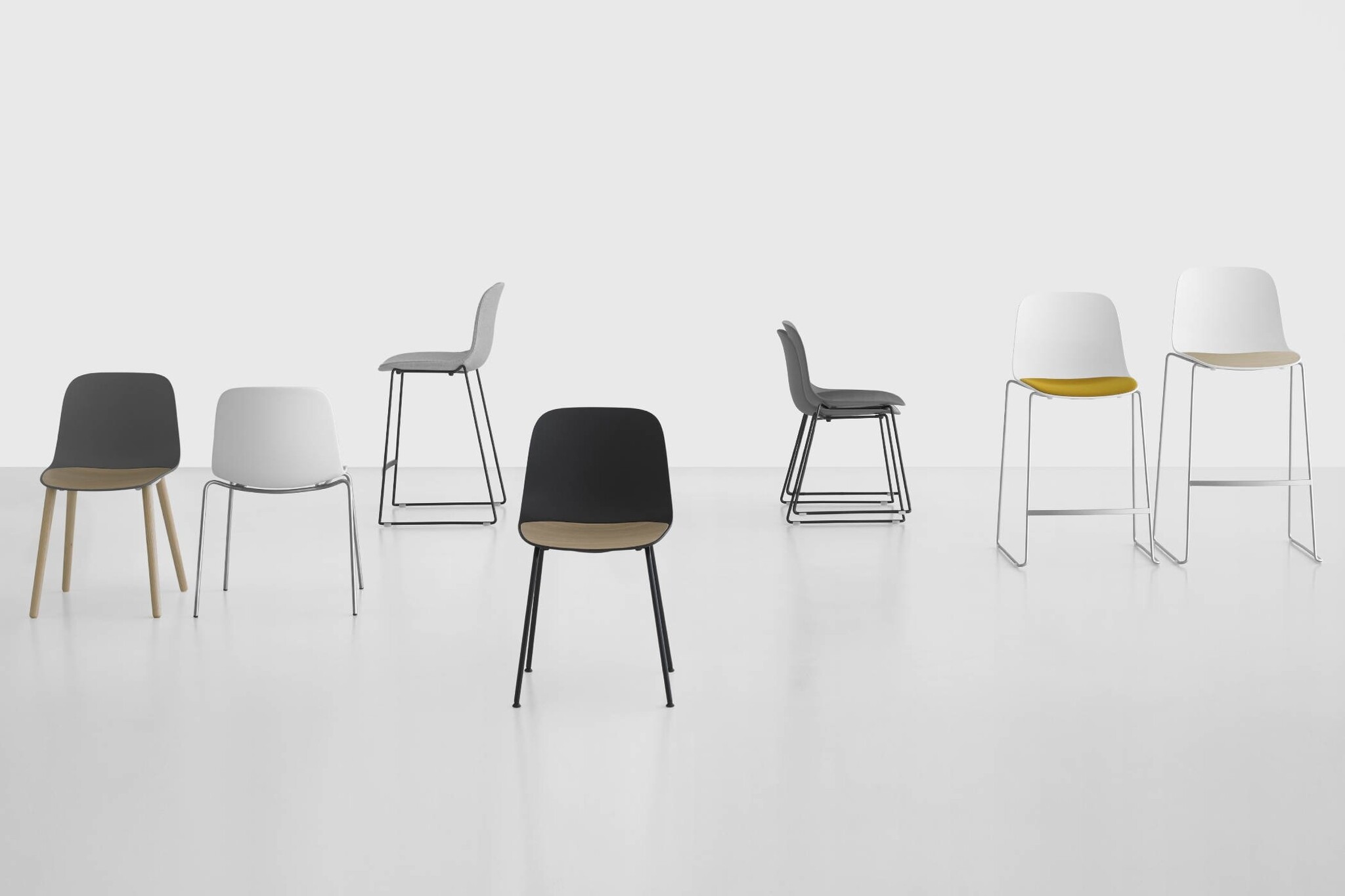 Ook leverbaar als stoel met diverse onderstellen.