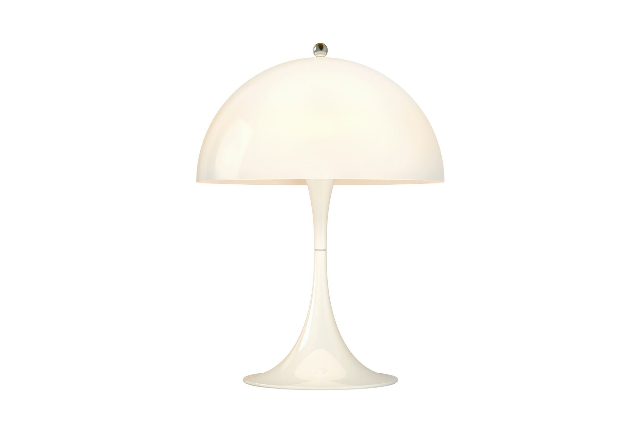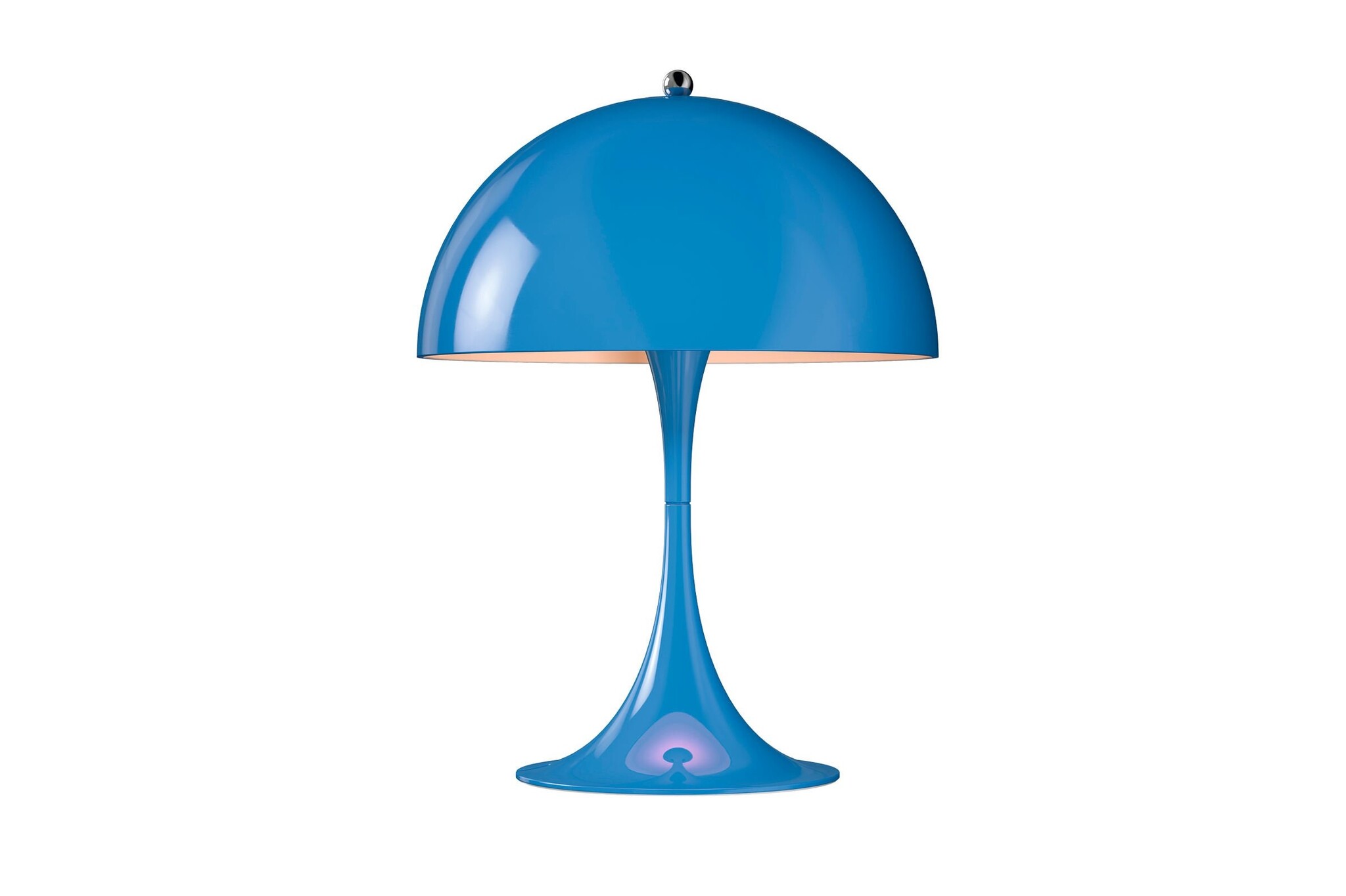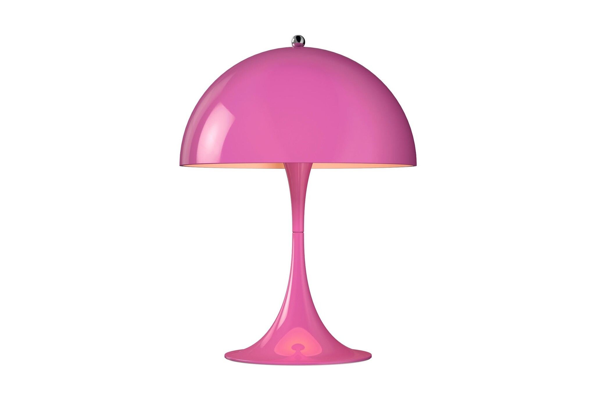 Verner Panton ontwikkelde de Panthella als staande lamp in samenwerking met Louis Poulsen al in 1971. In 2016 is hier een tafellamp bijgekomen. Deze mini-versie van de Panthella lamp is leverbaar in fantasierijke kleuren. De miniatuur Panthella beschikt over drie lichtintensiteiten en de nieuwste LED-technologie. De nieuwe metalen kleuren zijn wit aan de binnenkant en richt het licht naar beneden, waar het wordt gereflecteerd van de trompet-vormige voet.