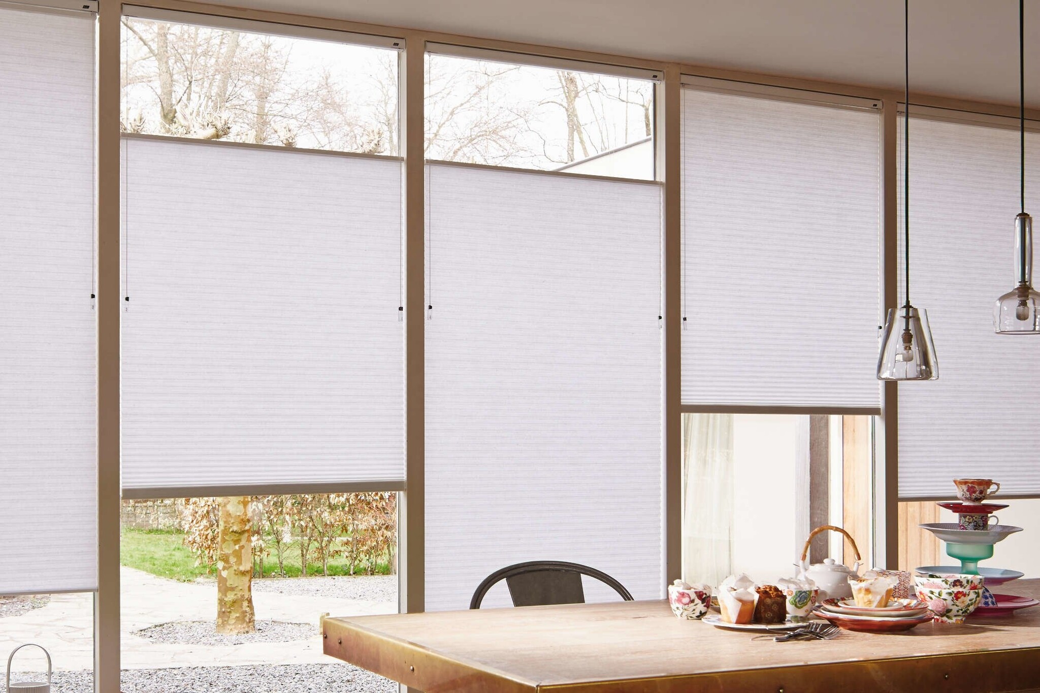 Duette Shades zijn isolerend in de zomer en winter. De stilstaande luchtlaag in de cel werkt als een isolatiedeken. De drie stilstaande luchtlagen van de cel-in-cel constructie Architella leiden tot een nog hogere isolatiewaarde en besparing.