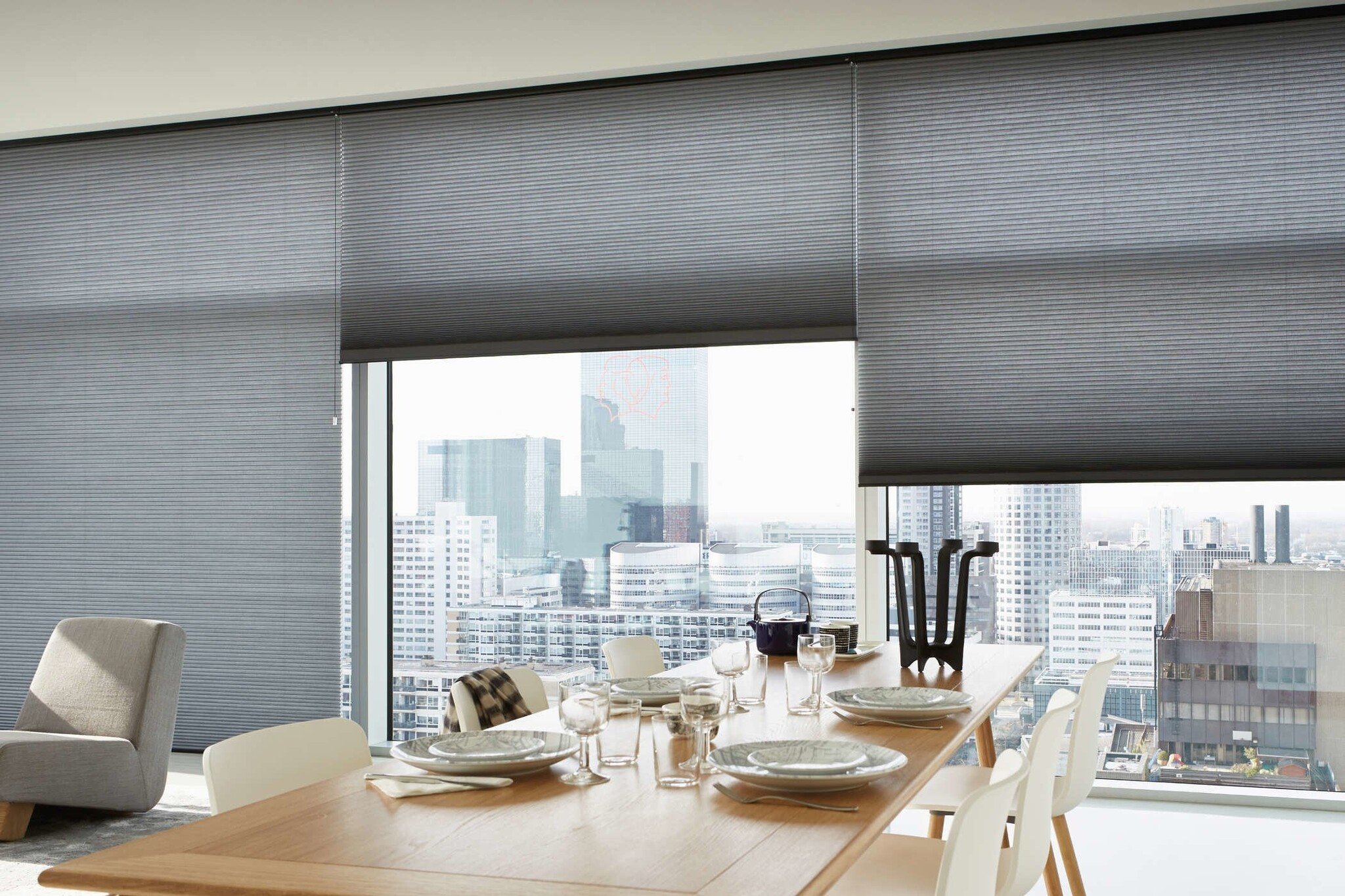 De meeste warmte in kantoren gaat namelijk verloren via de ramen, zelfs waar dubbelglas wordt toegepast. Duette Shades bieden een unieke combinatie: energiebesparende raambekleding die tegelijkertijd veel sfeer brengen.