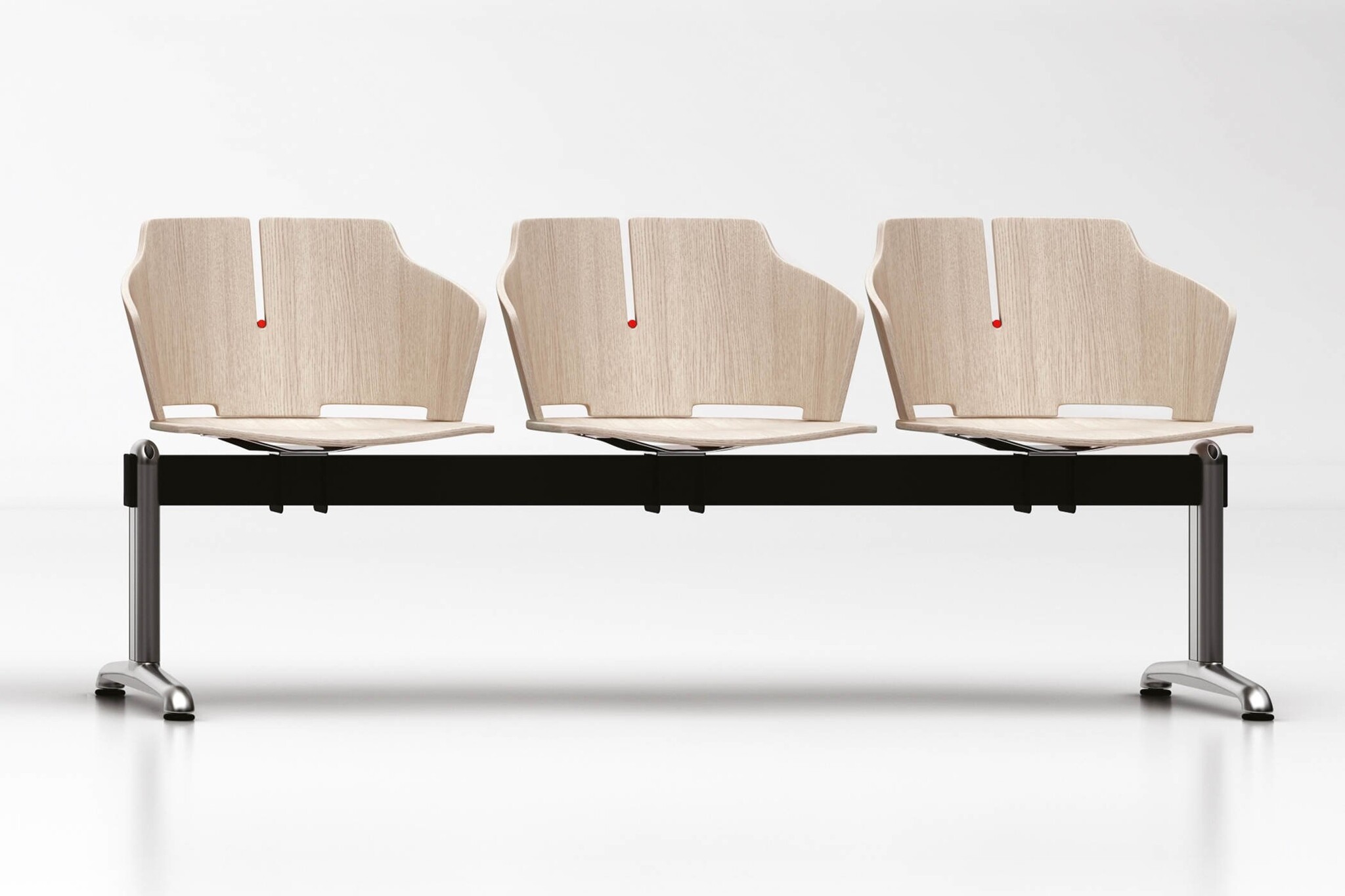 Een houten zetel gekenmerkt door het ergonomische comfort. Luxy Prima is er in vele varianten, waaronder deze wachtbank. Luxy Prima stoel is tijdens Orgatec 2014 geïntroduceerd. Over Luxy