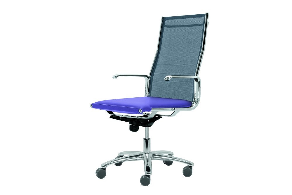 De bureaustoel | vergaderstoel is voornamelijk voorzien van aluminium gepolijst onderdelen en is leverbaar in verschillende stof, leer en net kleuren.