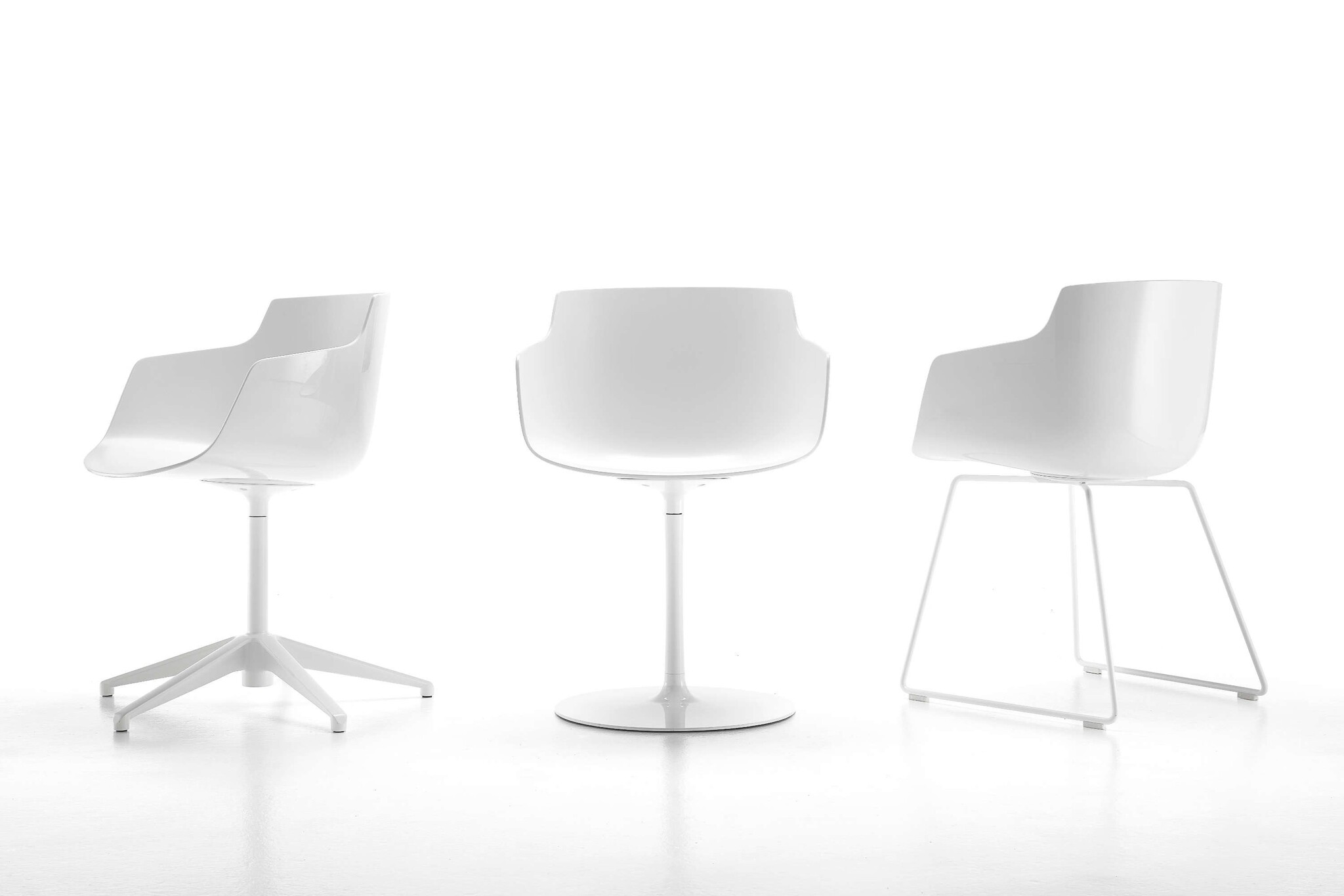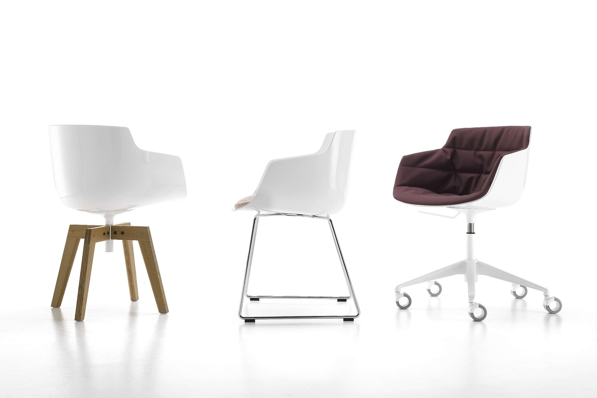 Mdf Italia Flow Slim Armchair, een nieuwe stoel voor de Flow collectie. De zitkuip kan in het wit, zwart of bekleed worden met een stof uit de MDF stoffencollectie. Daarnaast zijn er die onderstel mogelijkheden; een centrale kolompoot, 4-poots in eikenhout en de nieuwe VN 4-poten ook in het eikenhout.